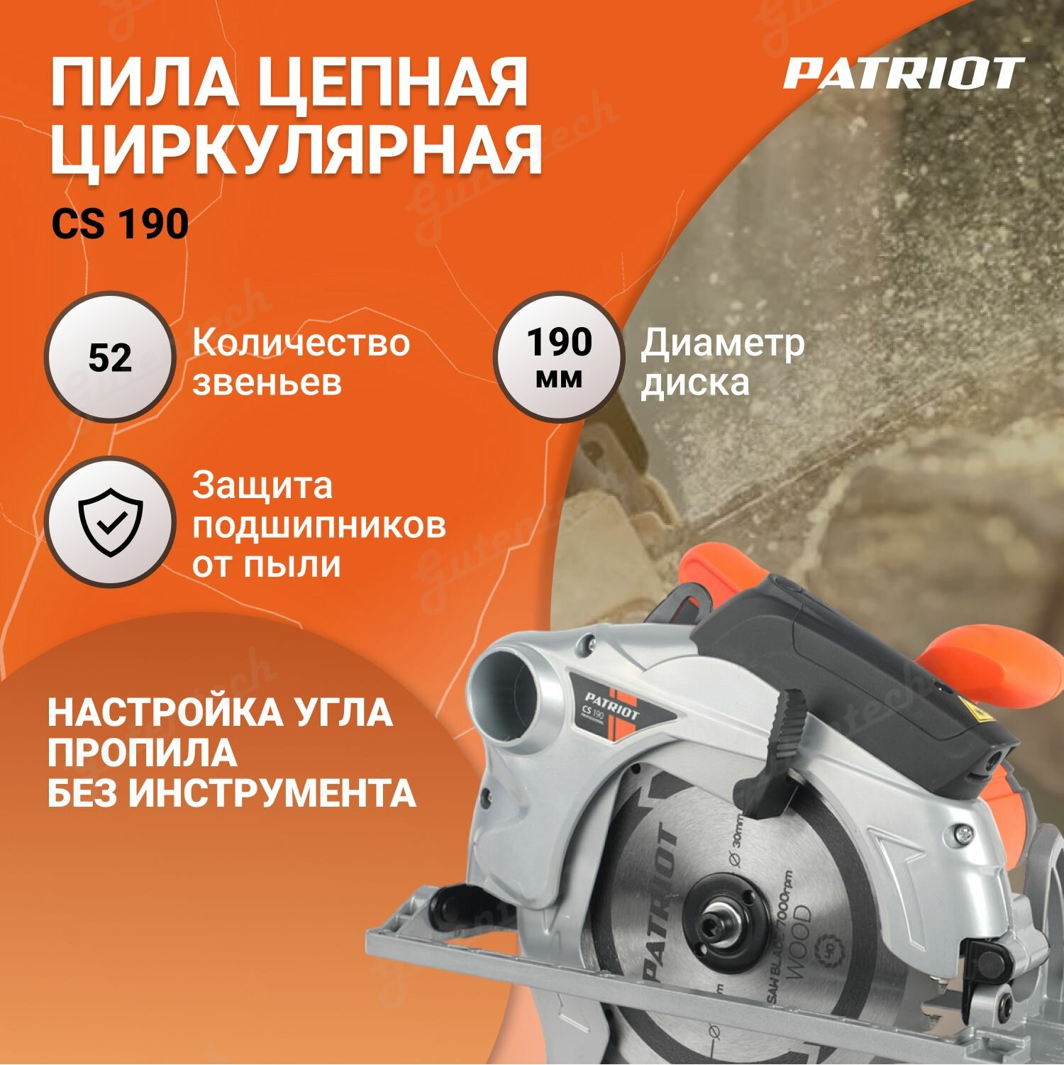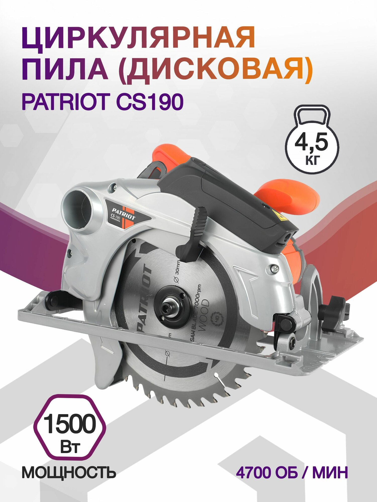 Дисковая пила PATRIOT CS 190, 1500 Вт