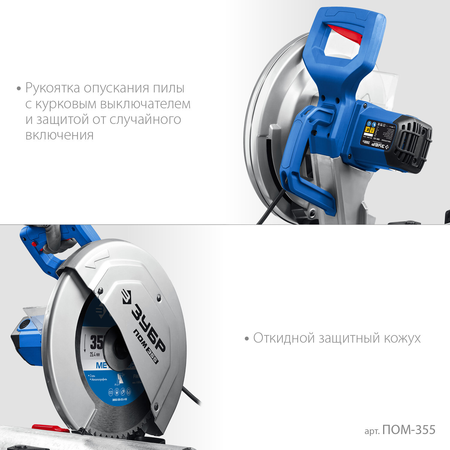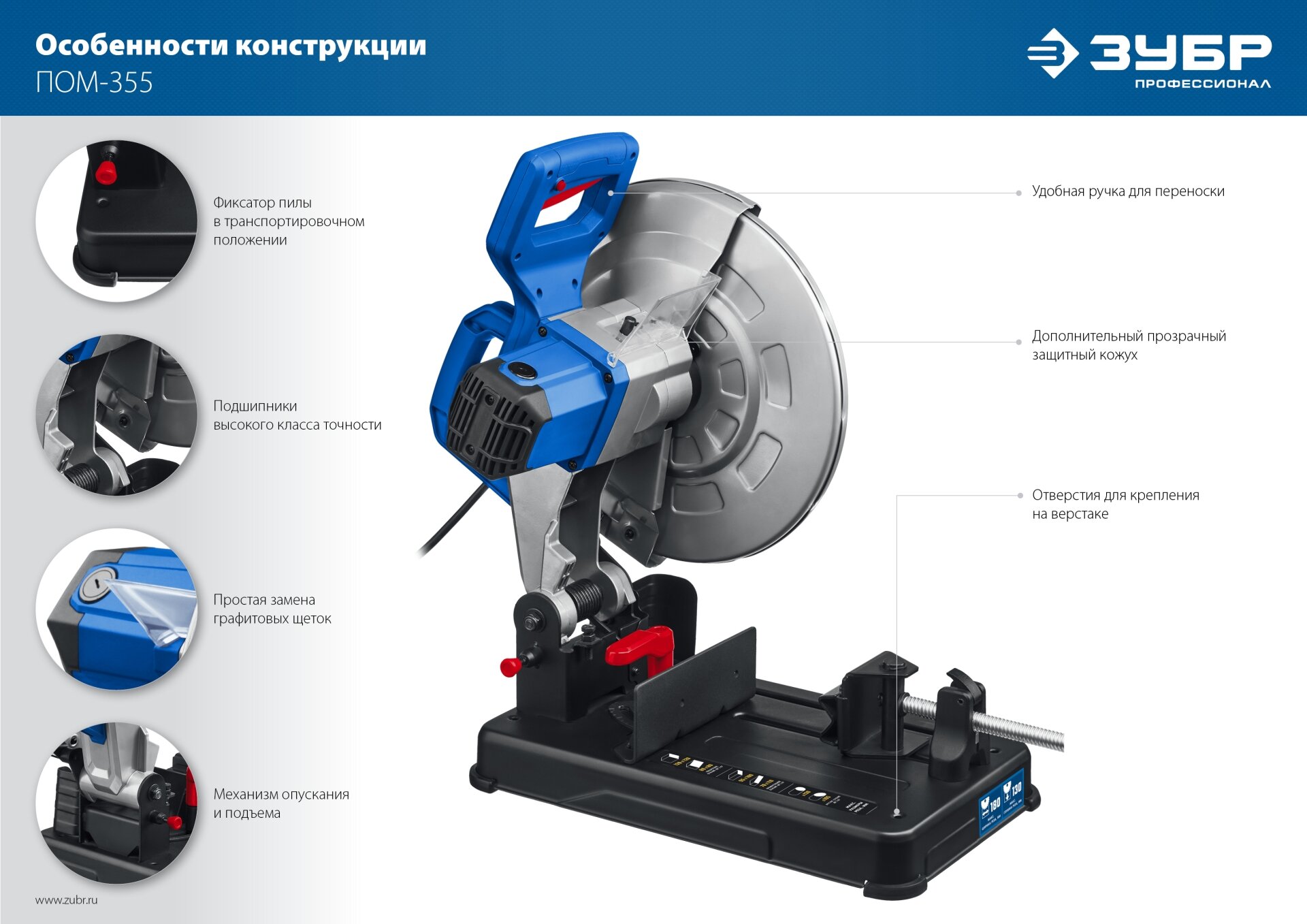 Отрезная пила по металлу, d355 мм, 2000 Вт Зубр ПОМ-355