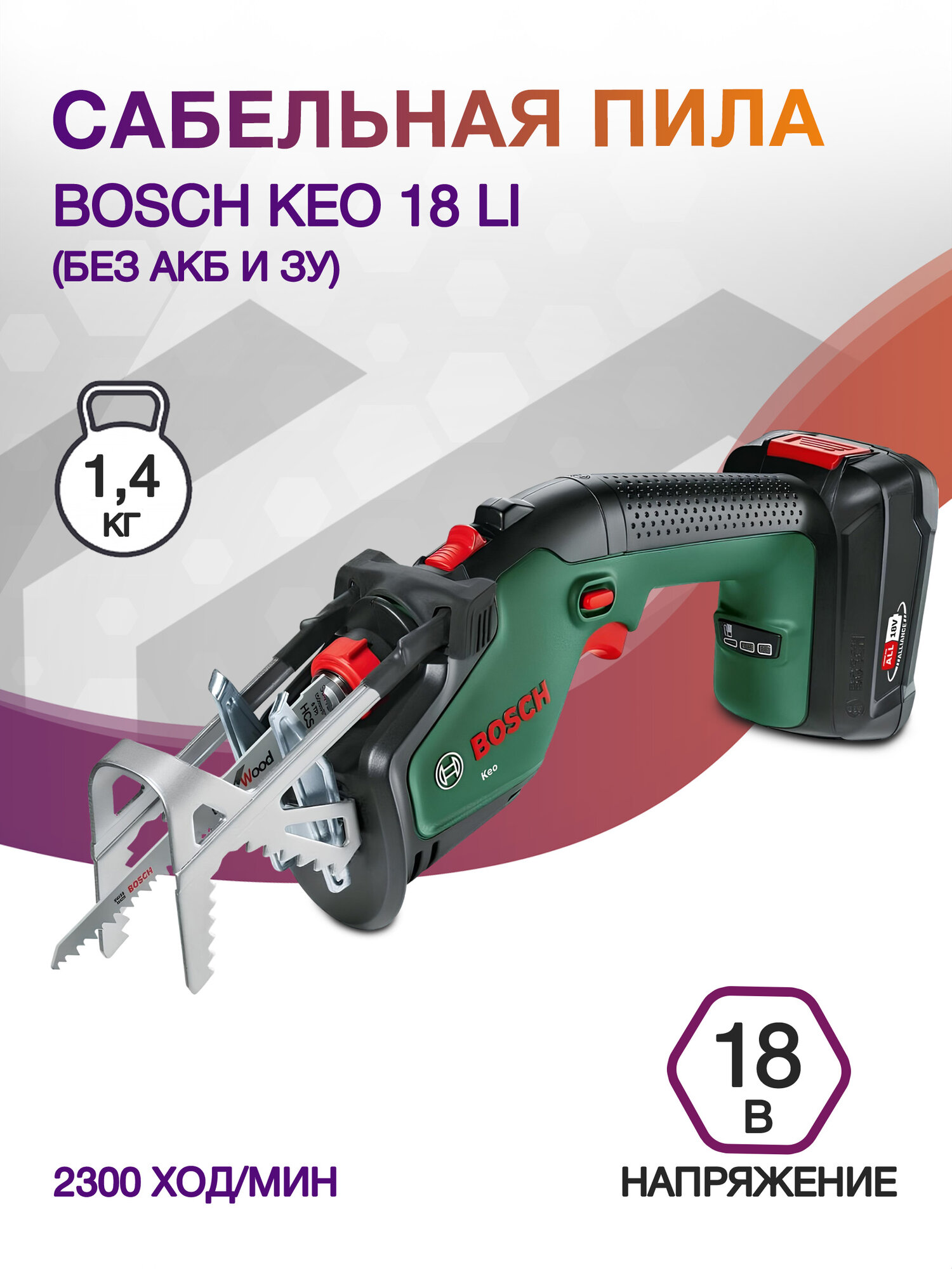 Сабельная пила Bosch KEO 18 LI (без АКБ и ЗУ), аккумуляторная, без АКБ, без ЗУ [0600861a01]
