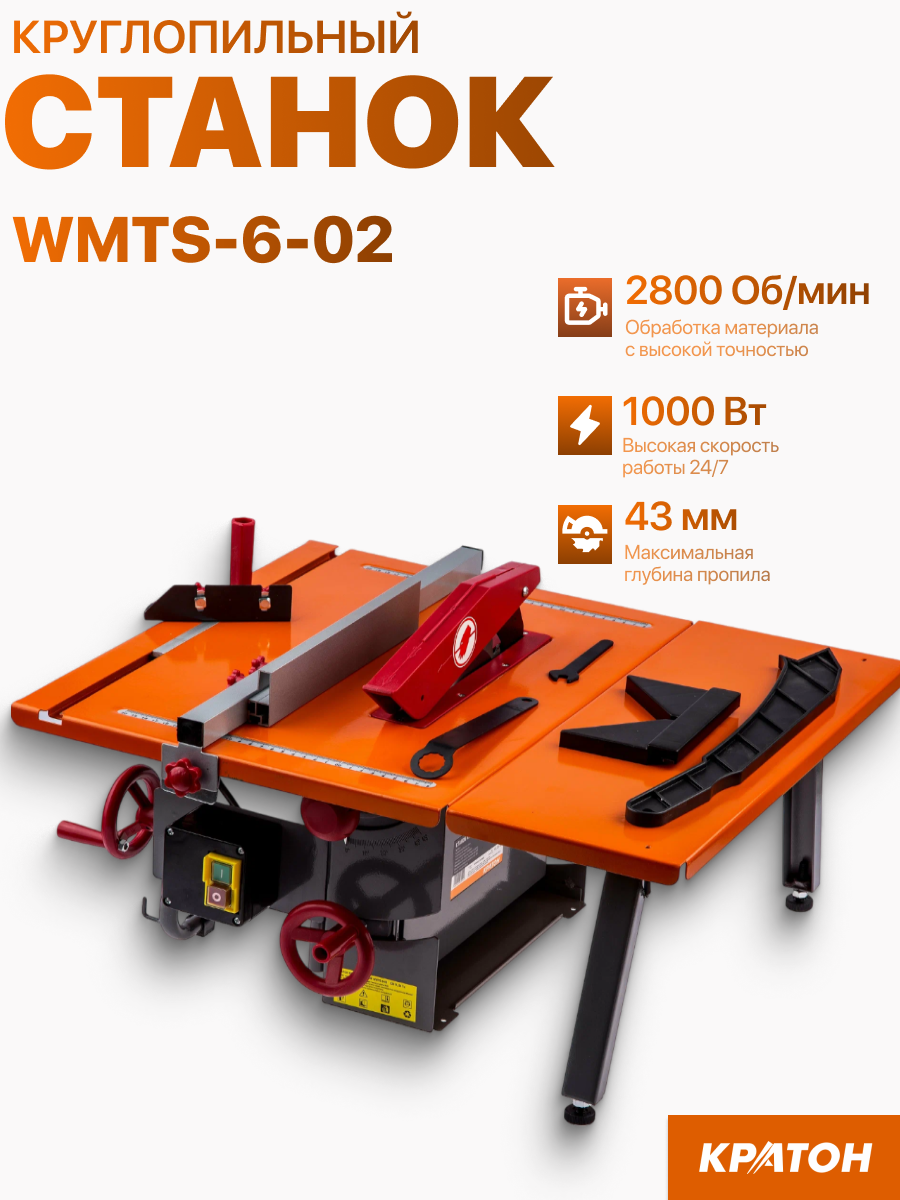 Станок круглопильный Кратон WMTS-6-02 по дереву , диаметр диска 200мм интересное: