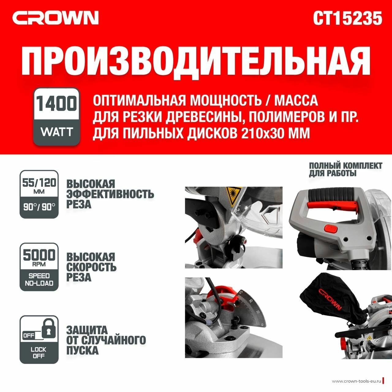 Торцовочная пила CROWN CT15235 интересное: