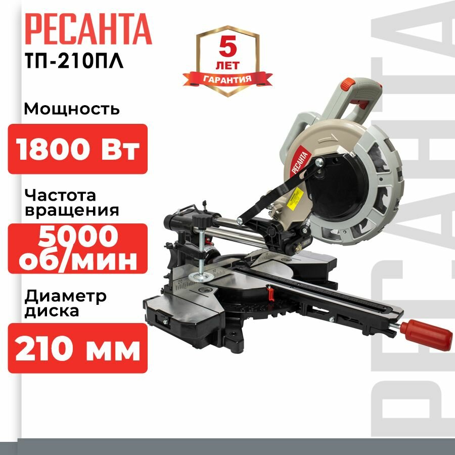 Торцовочная пила Ресанта ТП-210К , комбинированная, 1.6 кВт, диск 210мм