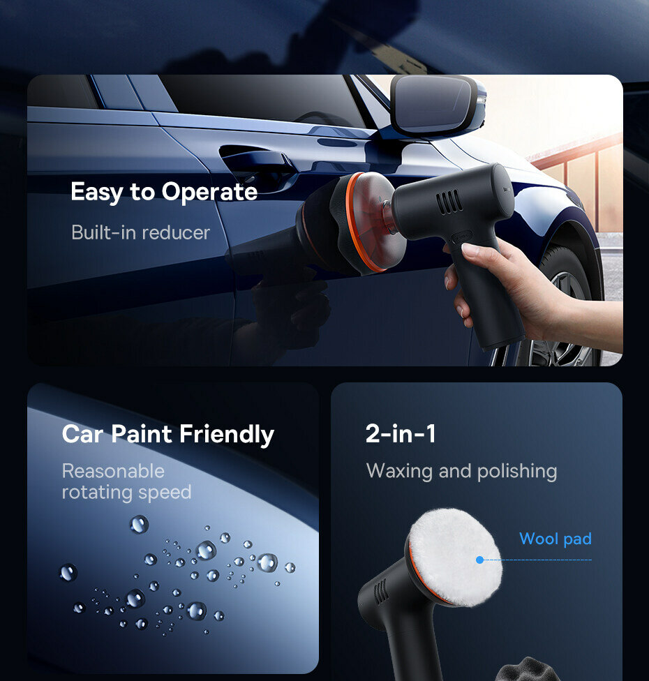 СохранитьБеспроводная полировальная машина Baseus NeoPower Wireless Mini Car Waxer Lite, 4000mAh, Черный, CRLQ000001 интересное: