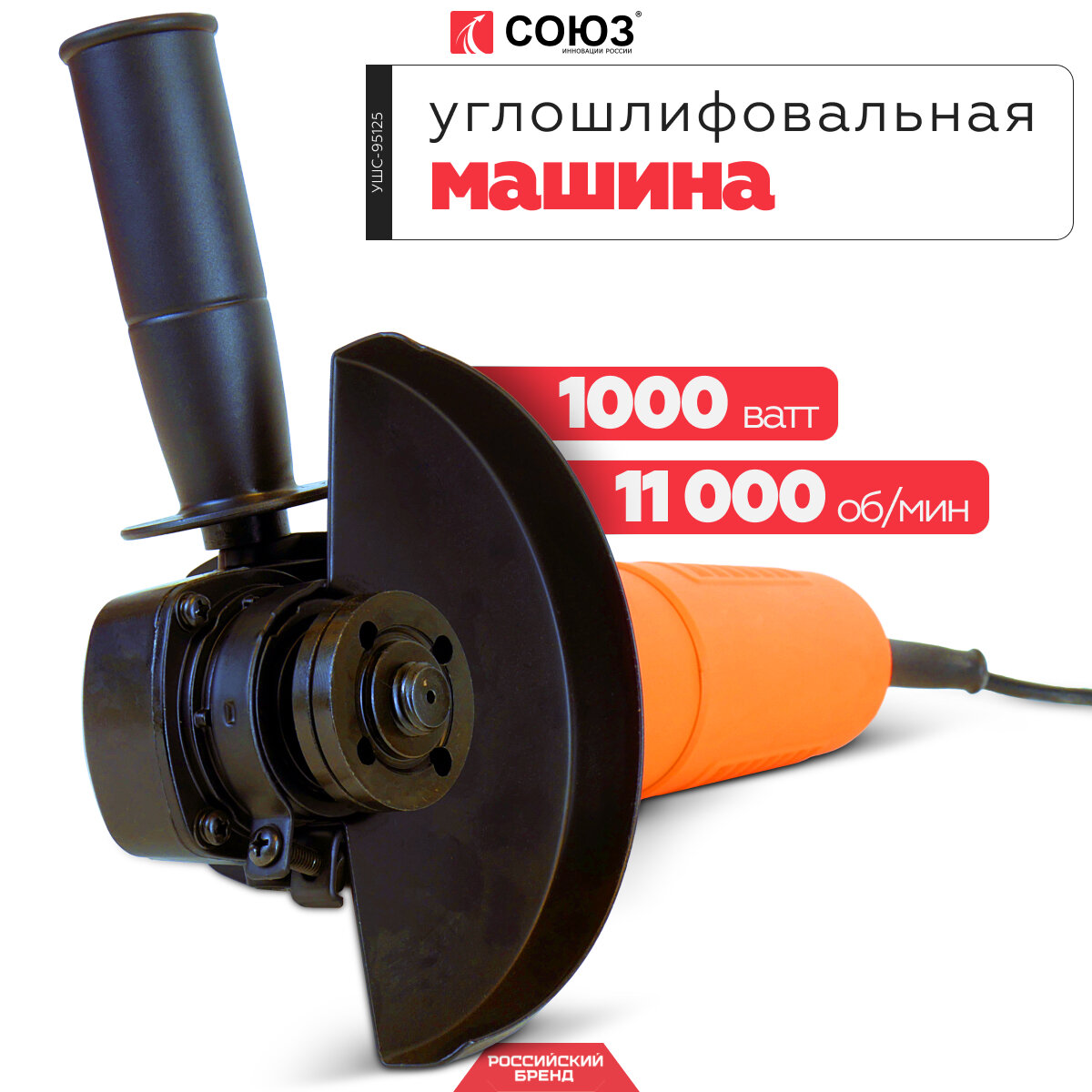 Машина углошлифовальная СОЮЗ УШС-95125 125мм,1000Вт,11000об/мин, блок. шпинд. интересное: