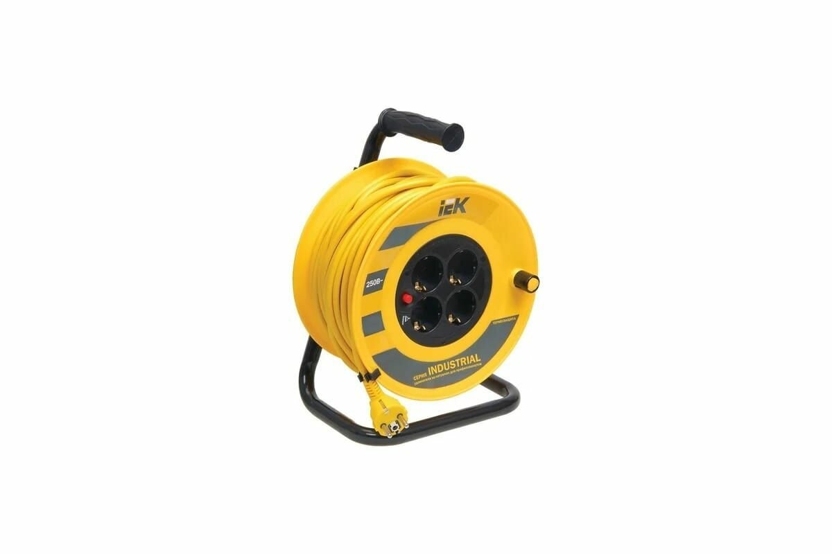 Удлинитель на катушке IEK Industrial УК40, 4 розетки, с т/з, с заземлением, 3 x 1 мм², 40 м