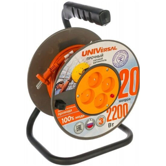 Купить Удлинитель на катушке Universal 4х20м без заземл. 10А IP20 ВЕМ-250 термо ПВС 2х1, 9632896