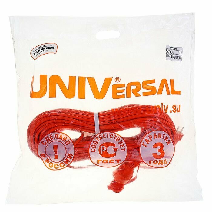 Силовой удлинитель UNIVersal УШ-16 IP-54 шнур ПВС 3*1,5 40м 9632005