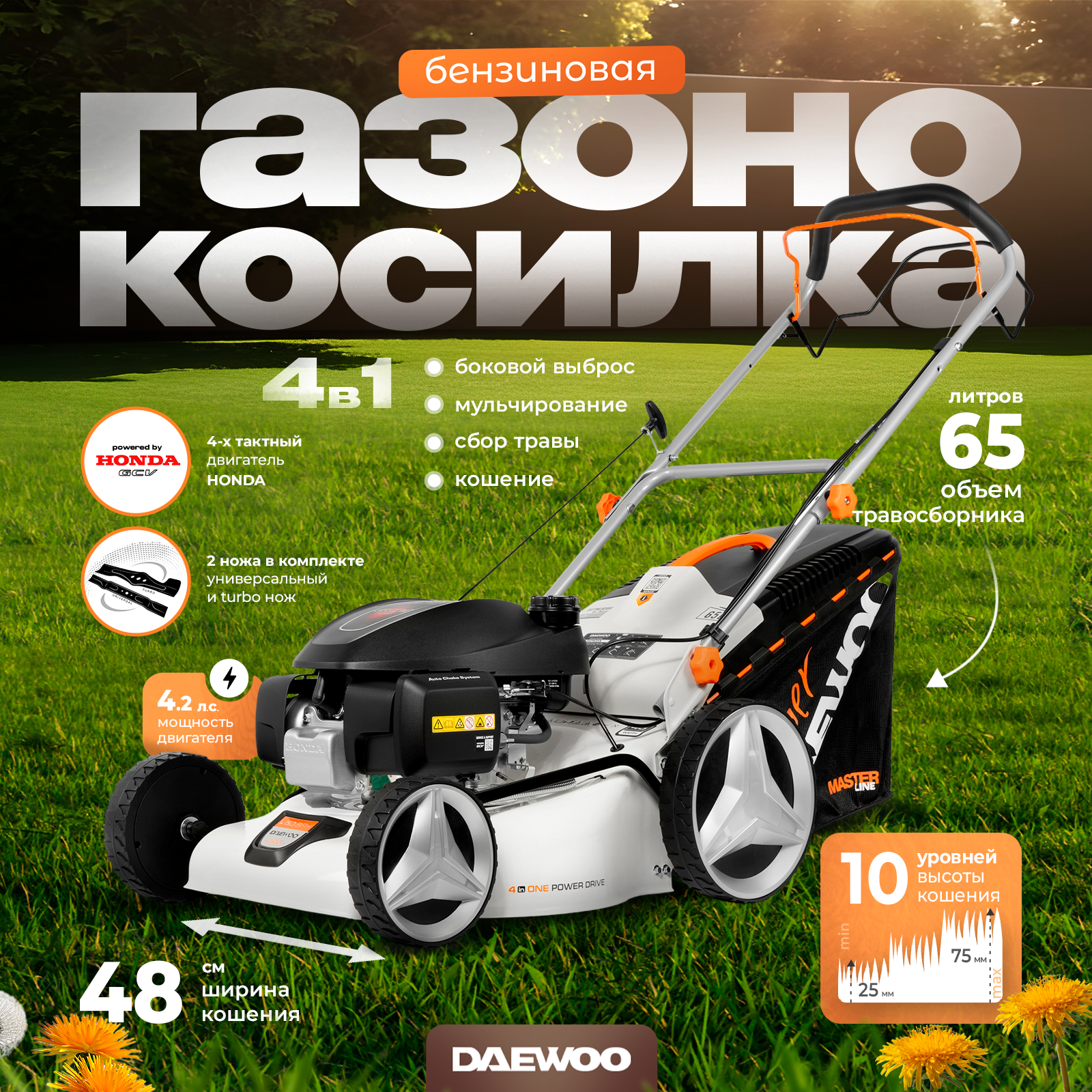 Газонокосилка бензиновая L 50 SPH DAEWOO 4,2 Лс 48 См интересное: