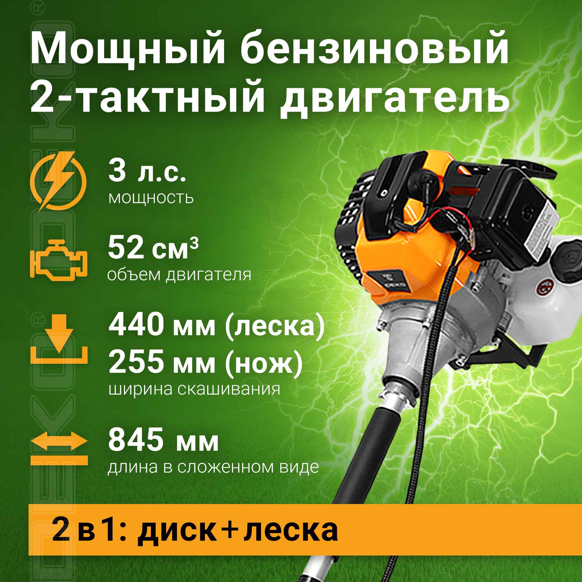 сломалась сразу головка,леска хуже некуда вся порвалась,через 2 покоса перестала работать,не было подачи зажигания,отдали в ремонт ещё за 1т руб,вообщем головку надо ещё брать металлическую,леску от 2,5 и тогда косить начинать,ещё и настроить её надо,благо сосед помог разбирается,бензин с маслом специальным разбавлять