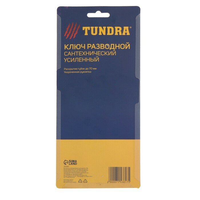 Ключ разводной сантехнический тундра, усиленный, раскрытие губок до 70 мм, 200 мм (1шт.) интересное: