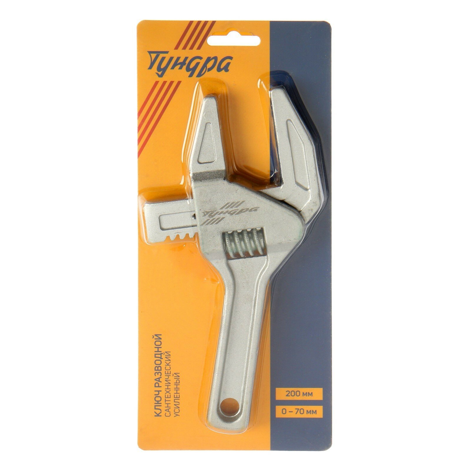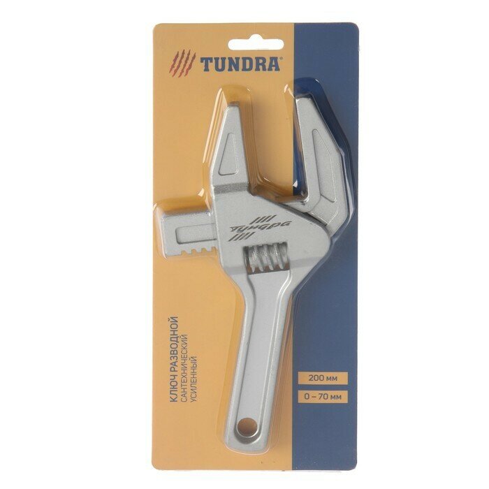 Тундра Ключ разводной сантехнический тундра, усиленный, раскрытие губок до 70 мм, 200 мм