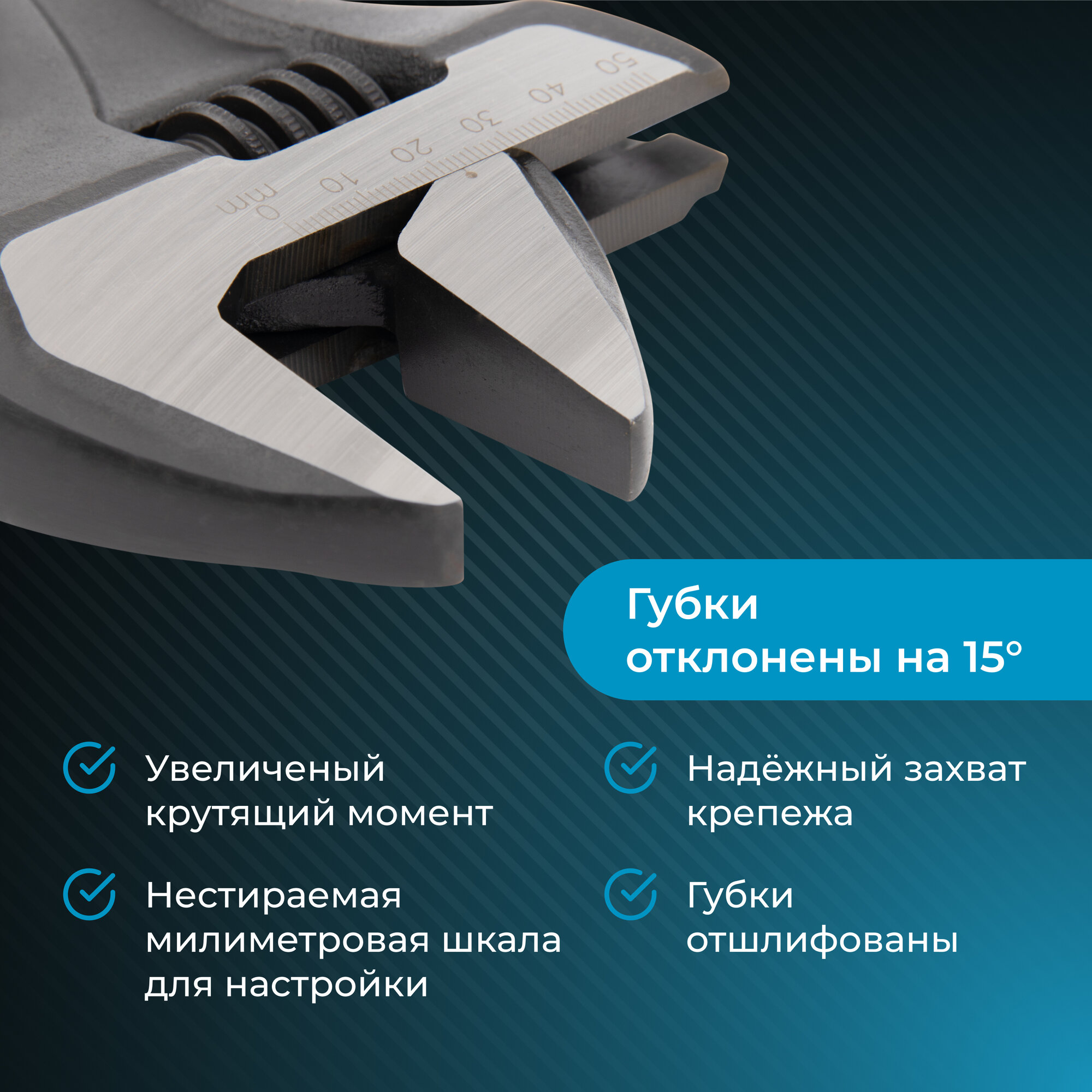 Разводной ключ NORGAU Industrial с раскрытием зева 50 мм, HРM High precision machining, 375 мм интересное: