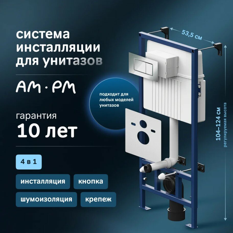 Инсталляция AM.PM "ProC", для подвесного унитаза, с шумоизоляцией, глянцевая, 4 в 1