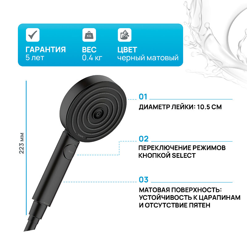 Душевая лейка HansGrohe Pulsify Relaxation 105 3jet 24110670 матовый черный