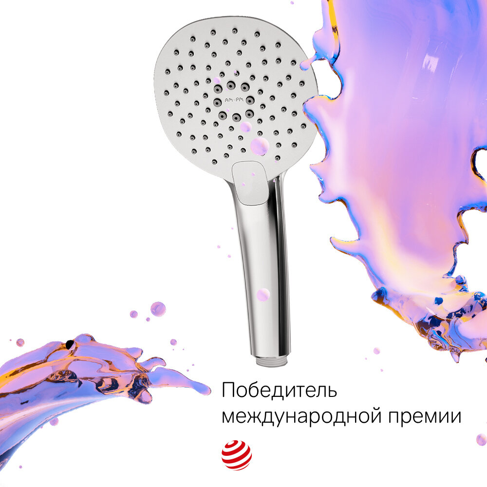 Купить Лейка для душа AM.PM Spirit V2.0 F0270A000 хром, диаметр 120 мм, 3 режима работы, мягкое переключение режимов кнопкой, функция Rub&Clean для легкой очистки душевых форсунок, Германия
