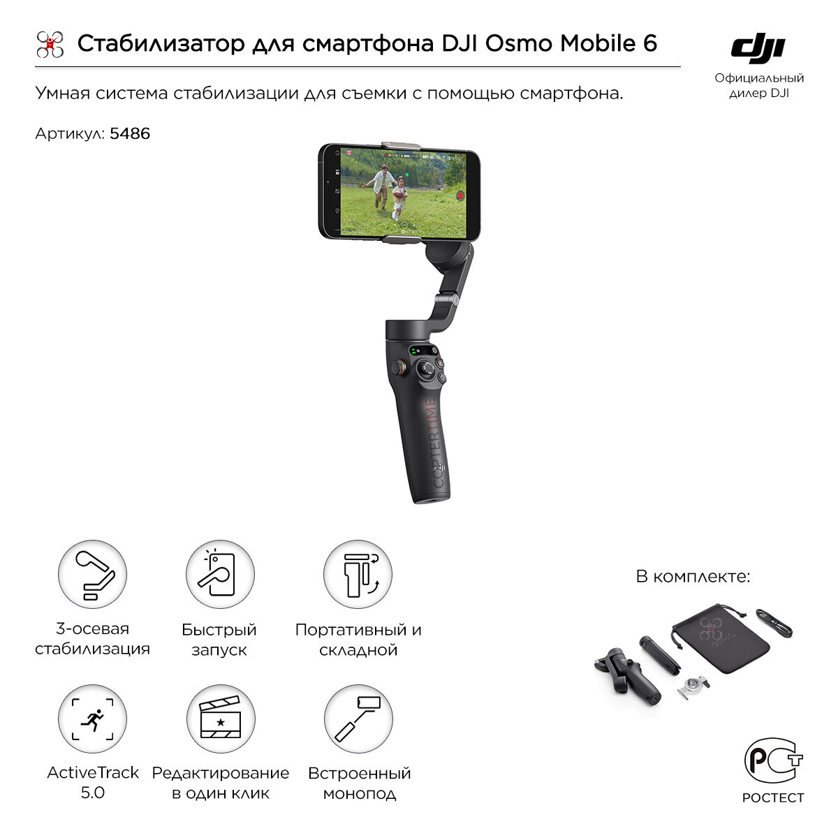 СохранитьЭлектрический стабилизатор для смартфона DJI Osmo Mobile 6 Black, Черый интересное: