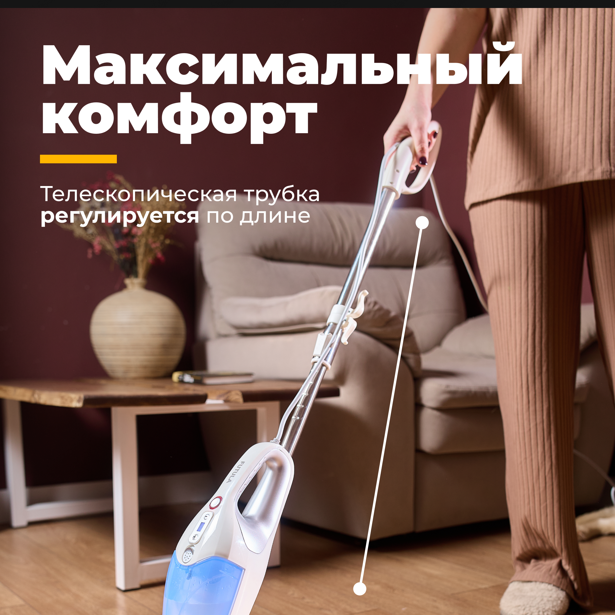 Достаточно компактная, большой резервуар для воды хватает на уборку 1 комнаты.
