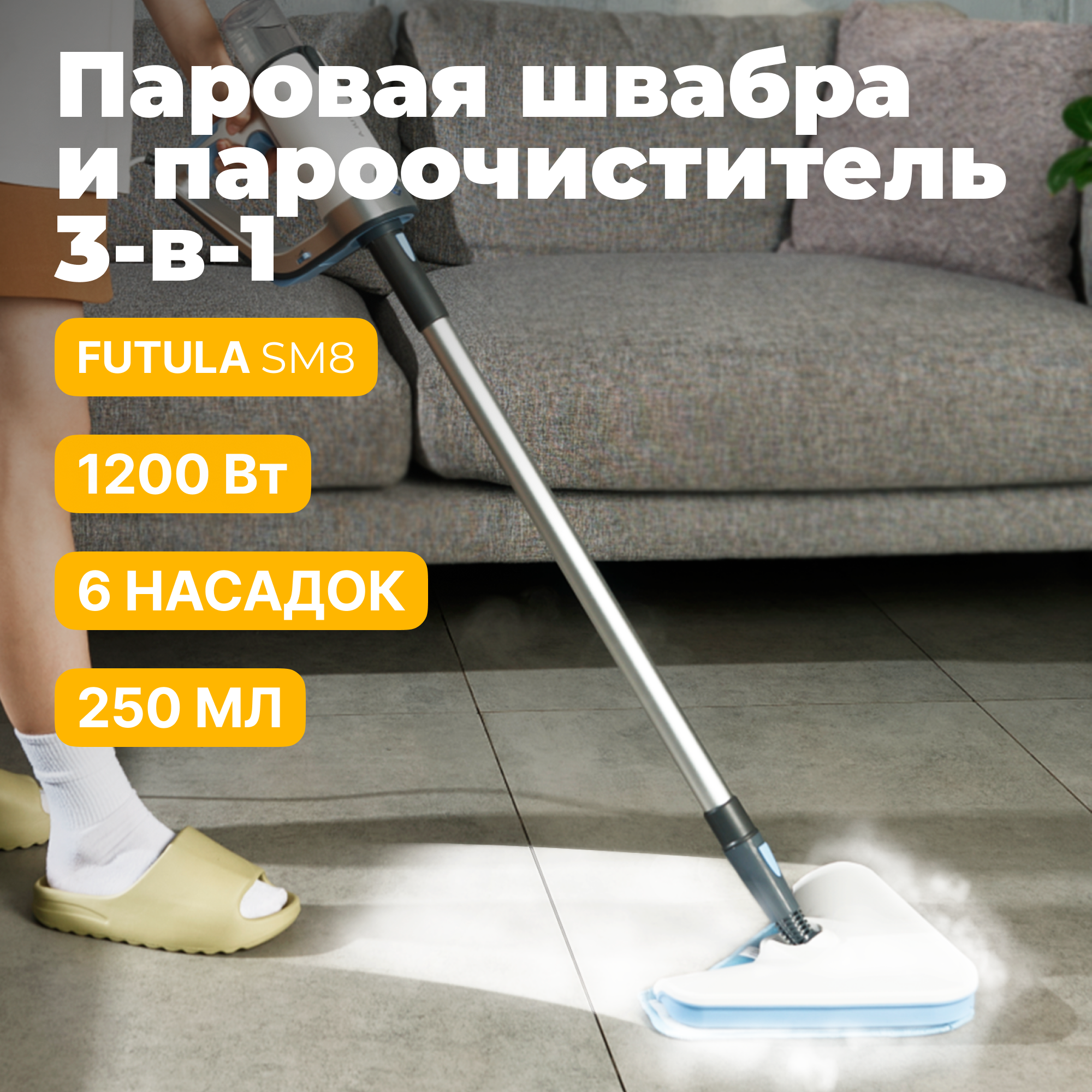 Ниже Вы можете прочитать отзывы на Паровая швабра Futula Steam Mop SM8, мощность 1200 Вт, 6 сменных насадок, ознакомится с подробными характеристиками, посмотреть интересные обзоры и фотографии на Паровая швабра Futula Steam Mop SM8, мощность 1200 Вт, 6 сменных насадок.