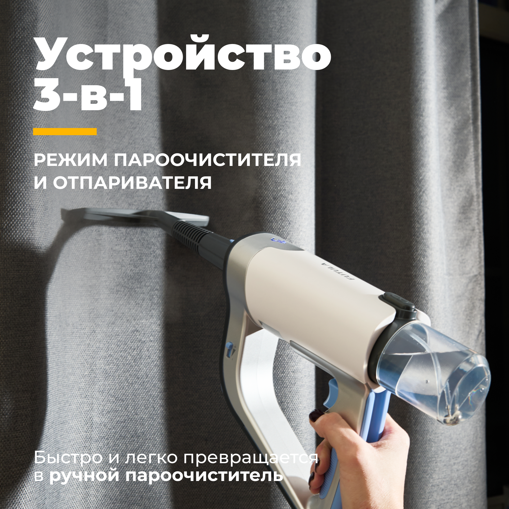 Прибором я очень довольна, не хлипкий, мощность парогенерации отличная. Отпаривала шторы на окне, пальто, скатерть - отлично справился. Кухонный гарнитур отмыла старый, плиту до блеска. Пол тоже приятно чистый после паровой обработки. Удобно, что много режимов температурных, деликатно с ламинатом и лдсп получается работать.