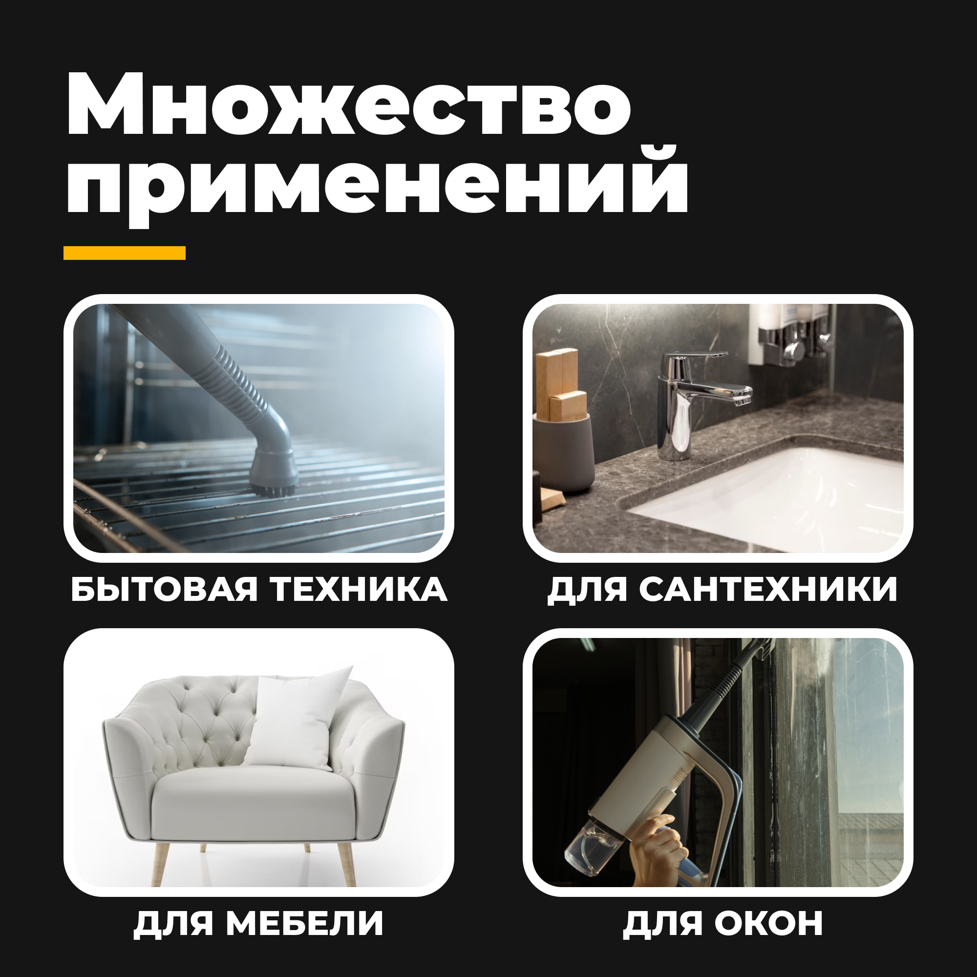 Отлично моет пол и стекла, очищает и увлажняет ковровое покрытие. Удаляет загрязнения, налет, жир на кухне