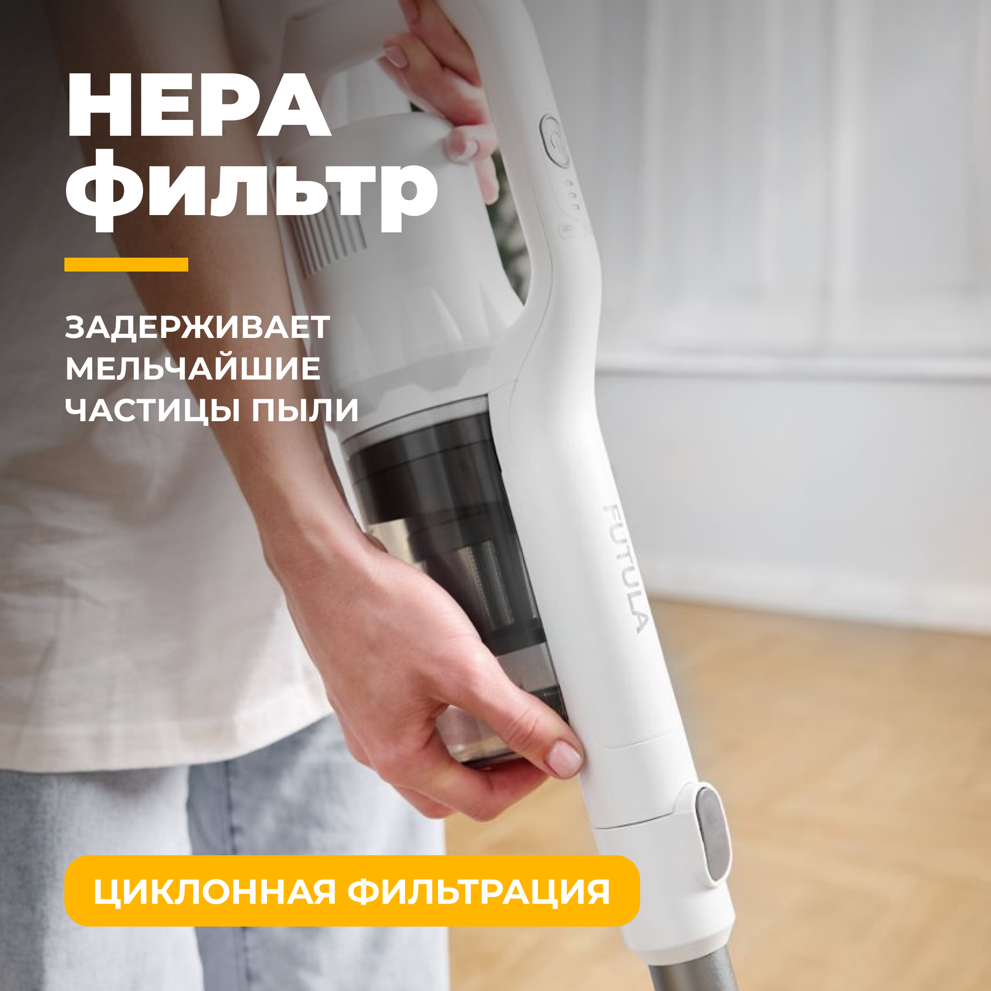 Купить Пылесос для дома Futula V8, белый, вертикальный, аккумуляторный с Hepa фильтром