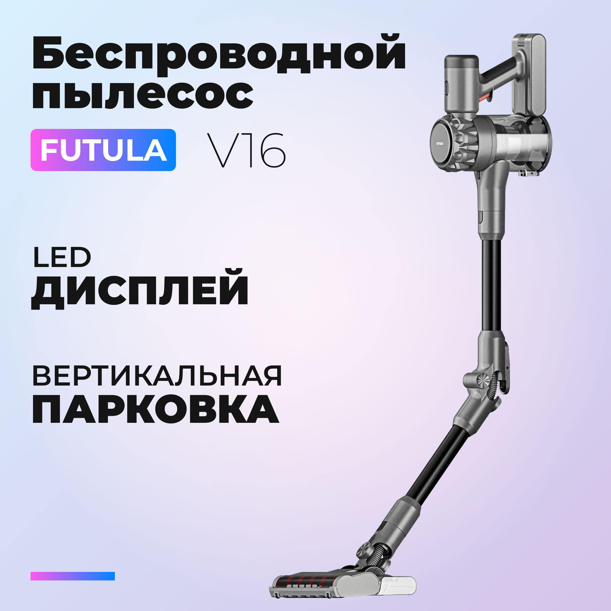 Пылесос для дома Futula V16, серый, вертикальный, аккумуляторный с LED дисплеем интересное: