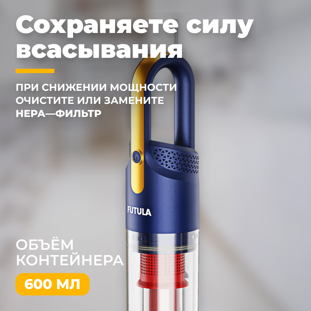 Пылесос для дома Futula V14, синий, вертикальный, аккумуляторный с Hepa фильтром