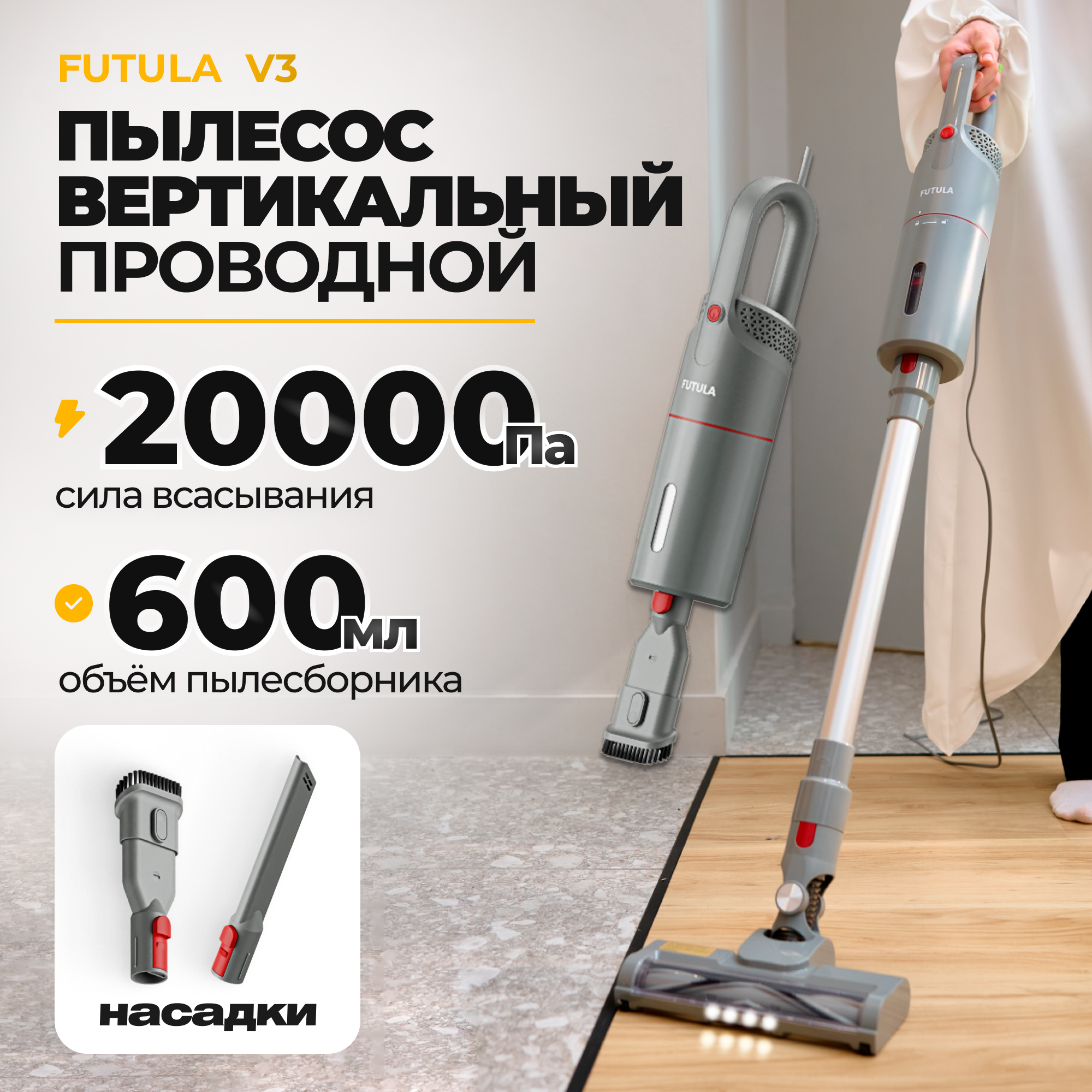 Купить Пылесос вертикальный Futula Vacuum Cleaner V3 серый, проводной со съемным контейнером для мусора