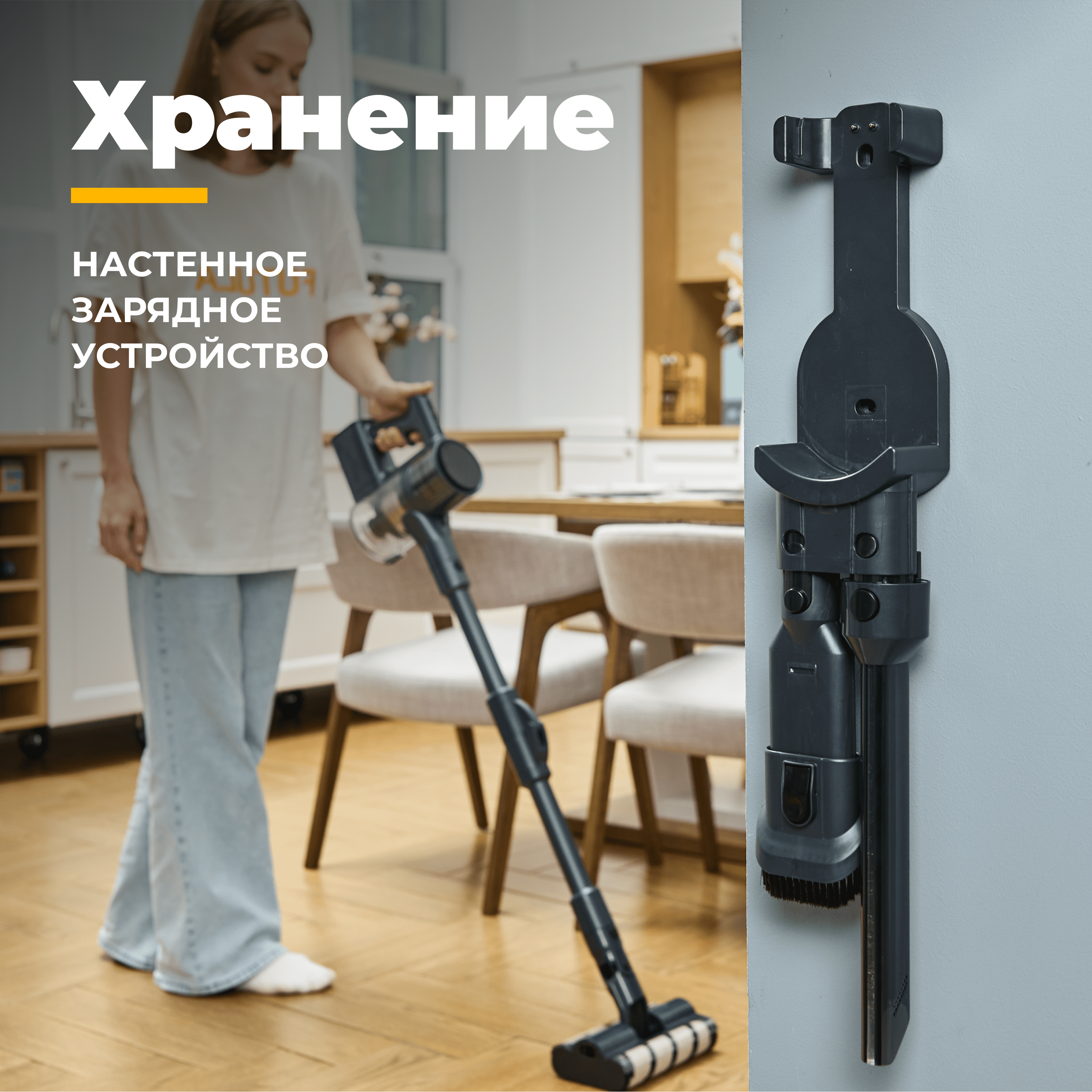 | Минусы: | Нет напольной подставки, на настенном креплении мало мест размещения насадок. Не помешал бы в комплекте второй аккумулятор. |