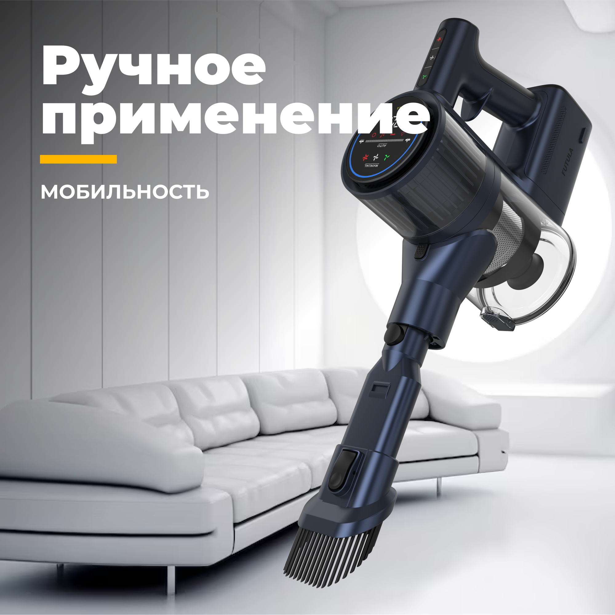 Пылесос для дома Futula V18, черный, вертикальный, аккумуляторный с подсветкой