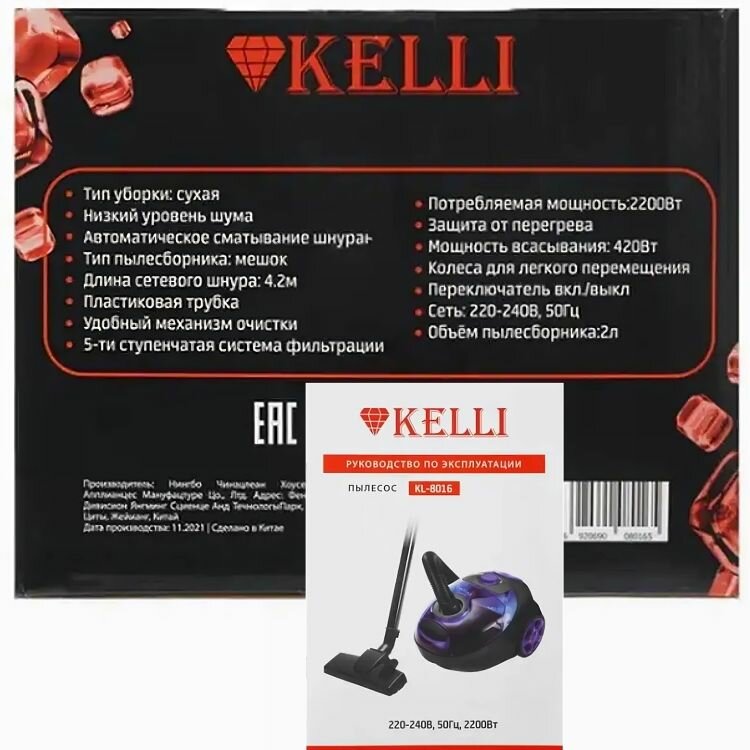 Пылесос Kelli KL-8016 с мешком 2200Вт