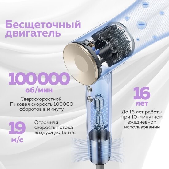 | Плюсы: | Быстро сушит волосы, тактильно приятный, цветовая индикация по режимам |
