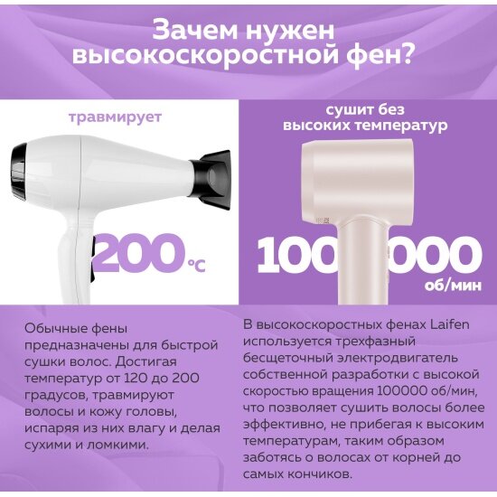 Laifen Фен для волос SE Lite 1400 Вт, (Глянцево-фиолетовый)