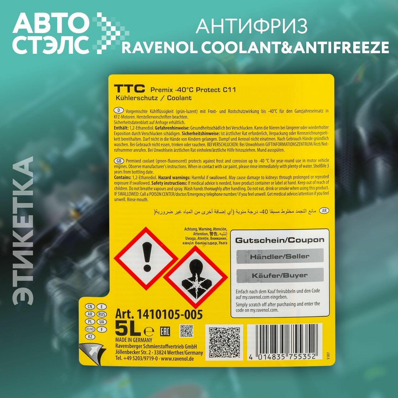 Антифриз Ravenol G-11 Ttc Traditional Technology Cooliant Premix -40 5Кг Ravenol арт. 4014835755352