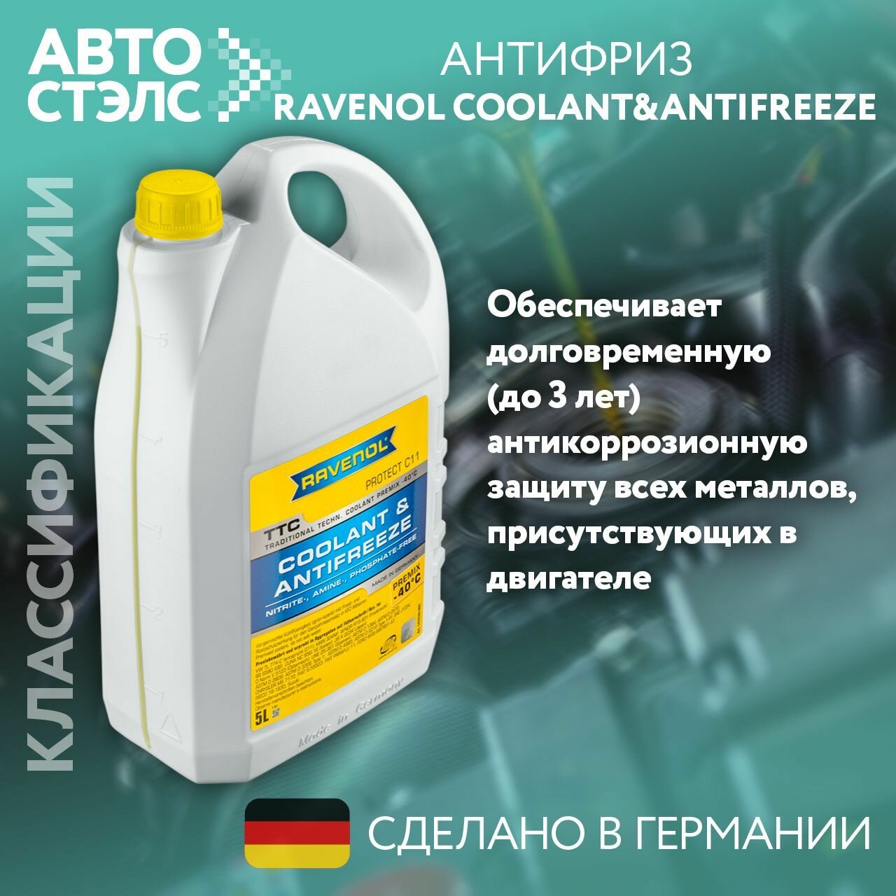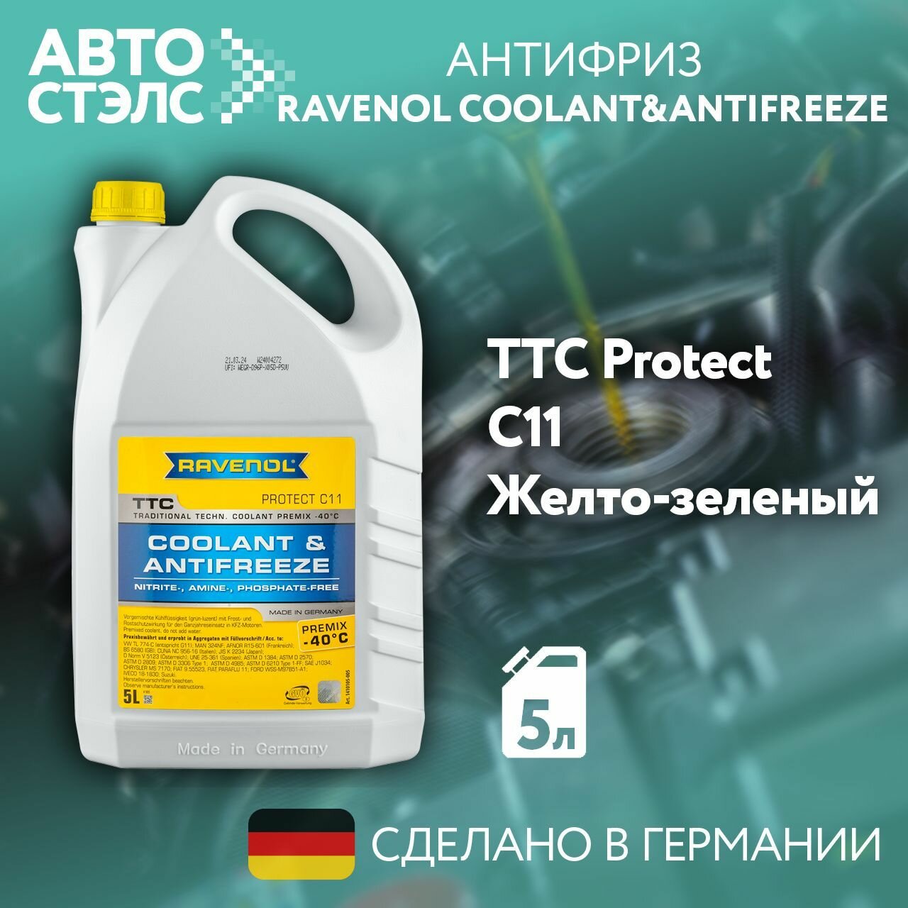 Антифриз готовый к прим. жёлтый ravenol ttc traditional technology coolant premix ( 5л), RAVENOL 4014835755352 (1 шт.)