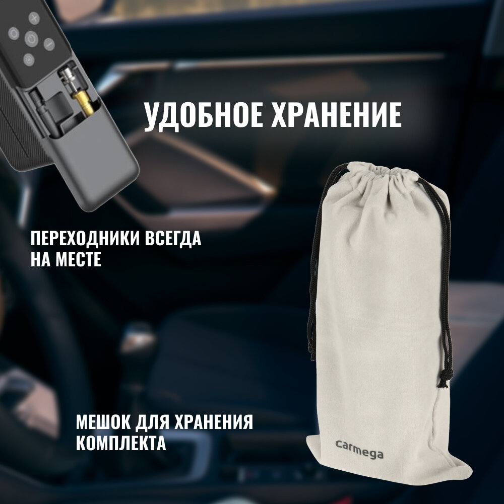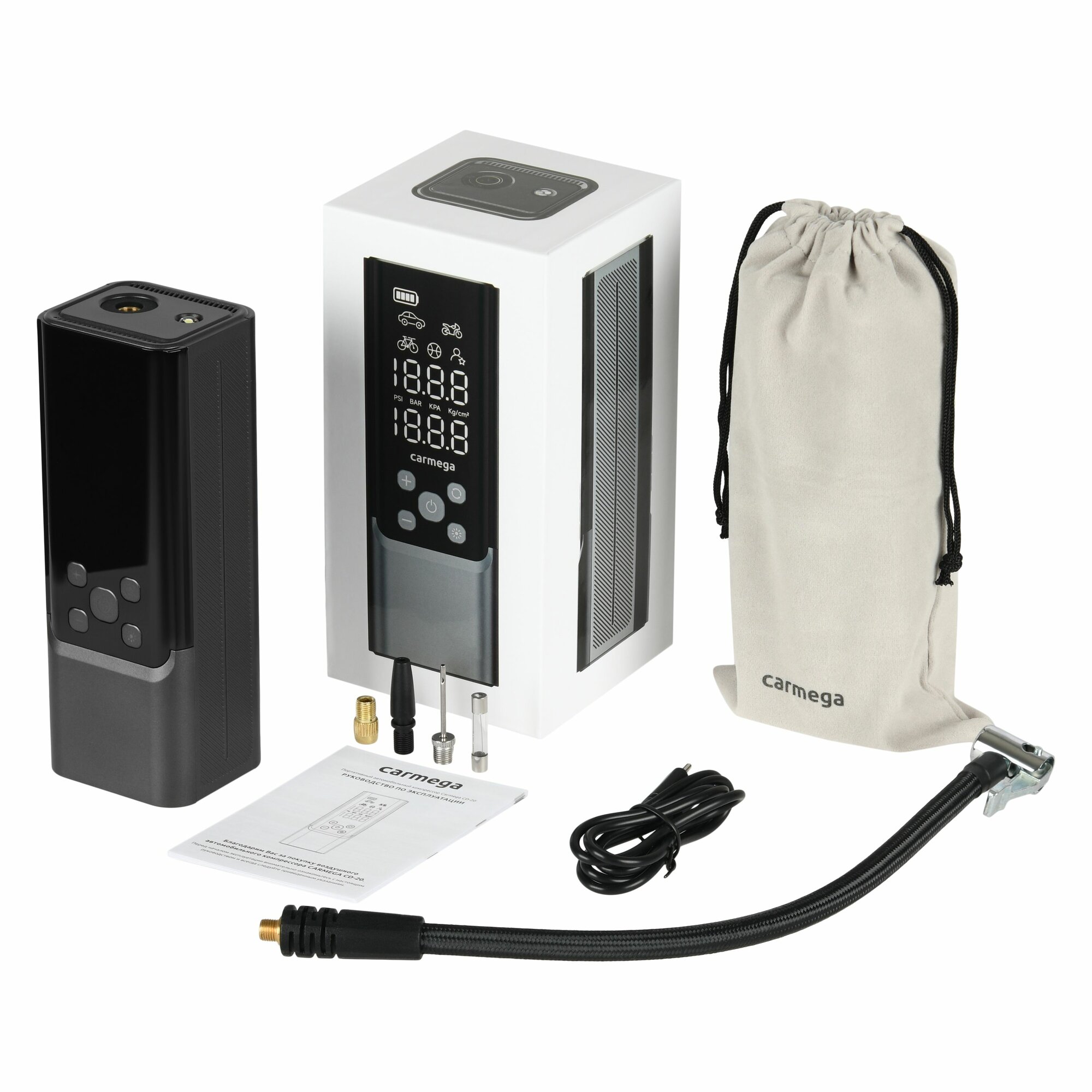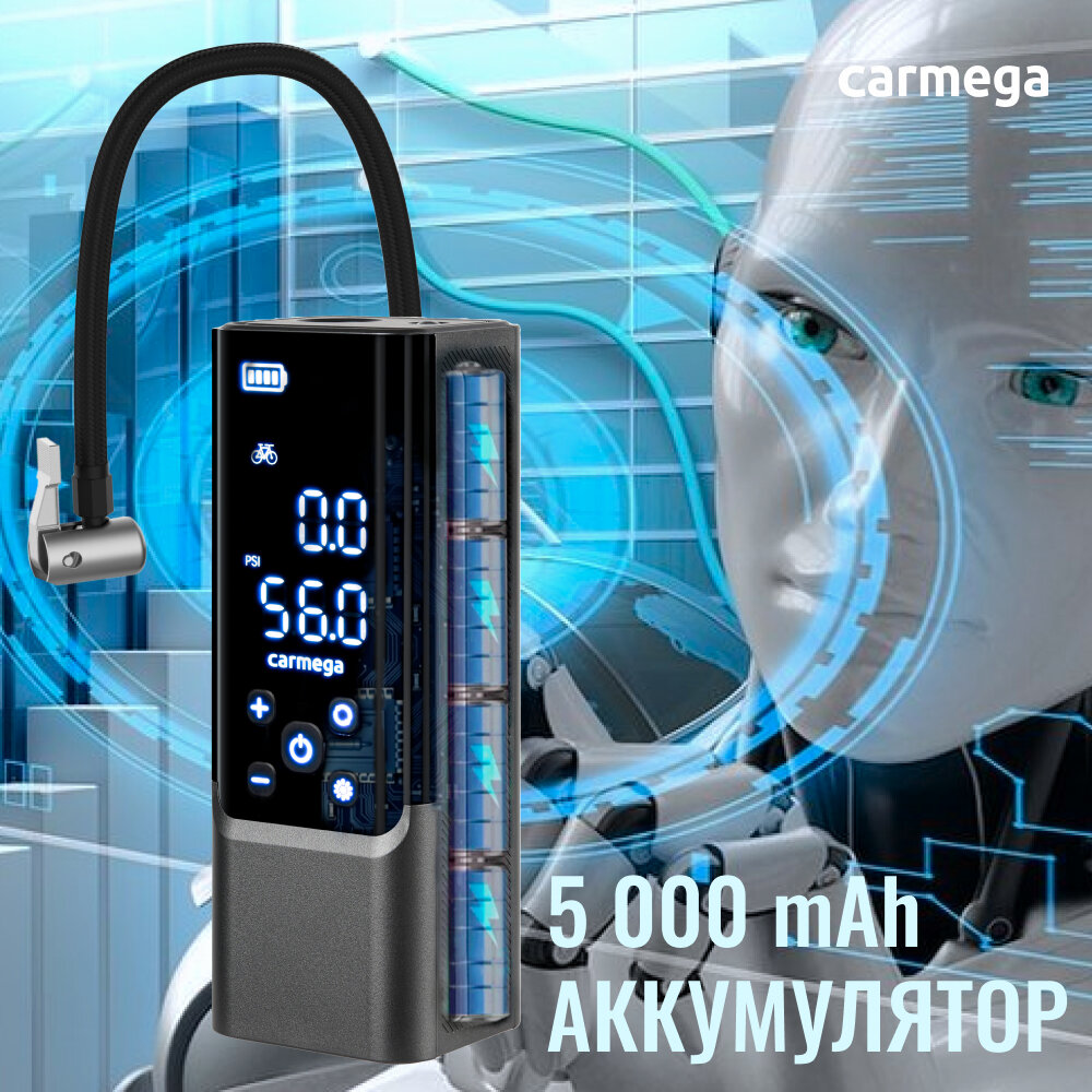 CARMEGA CD07 Компрессор автомобиьный портативный 10атм. 5000мАч фонарь, 3 насадки, чехо CARMEGA