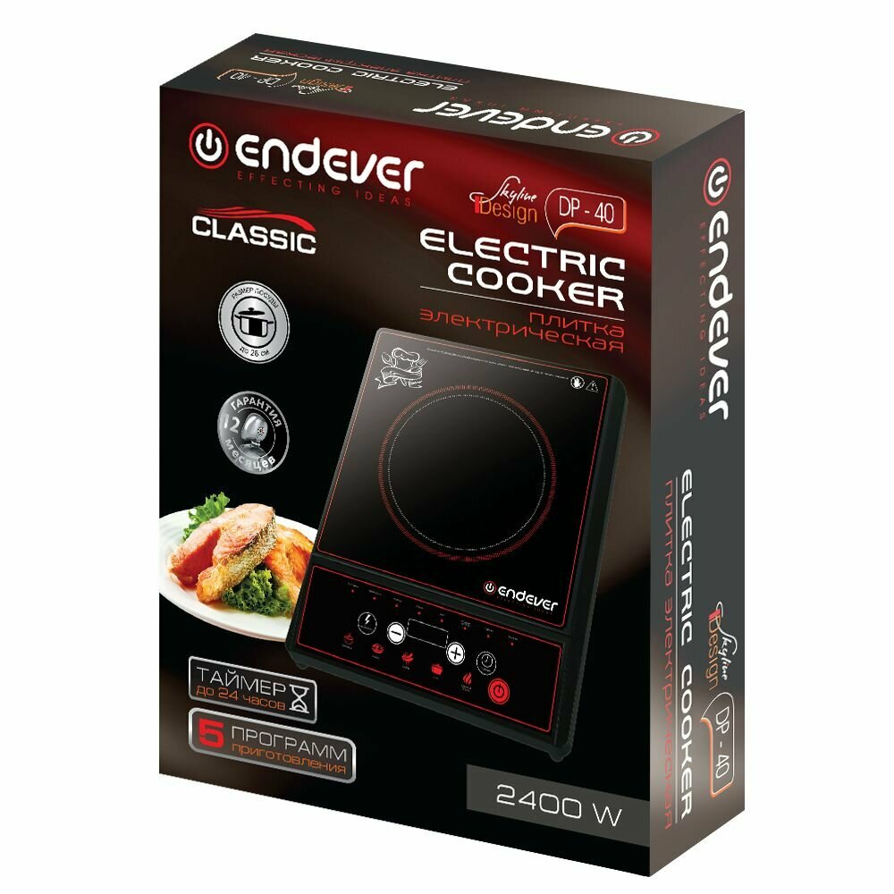 Плитка Электрическая Endever Skyline Dp-40, Черный, Мощность До 2400 Вт, 7 Автоматических Программ, Таймер