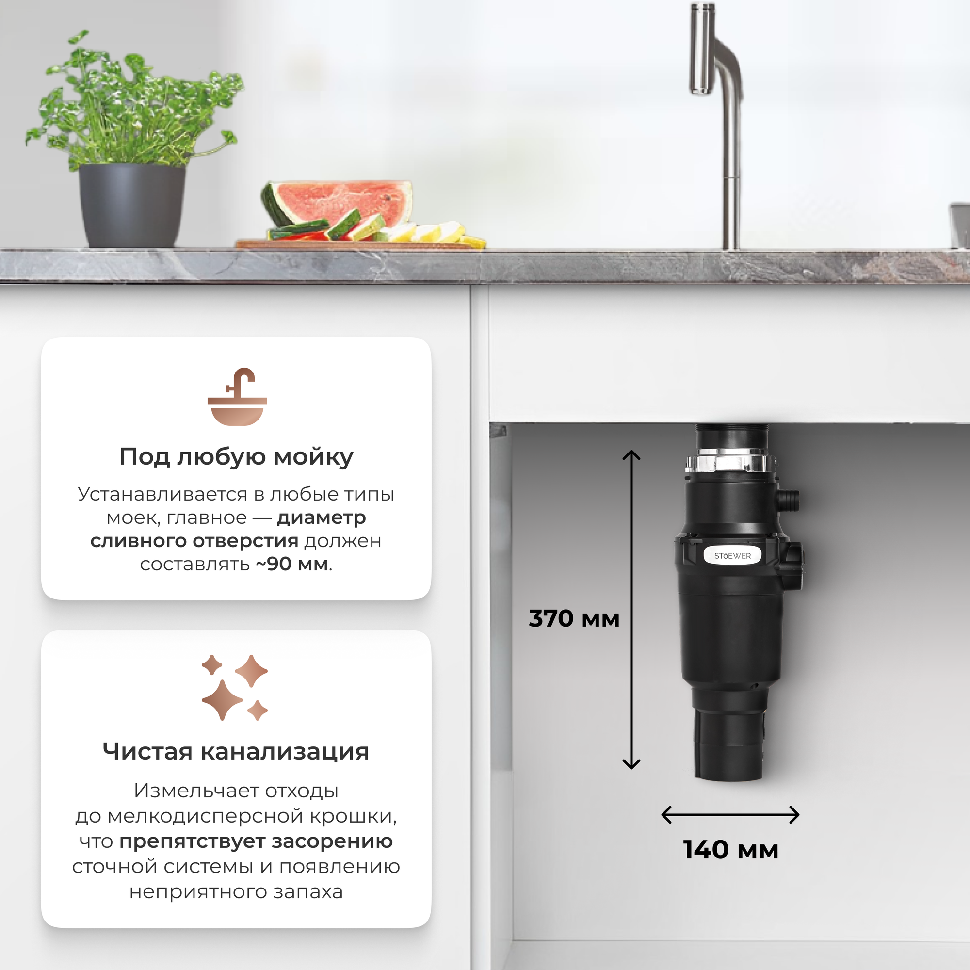 Измельчитель пищевых отходов STOEWER штоер D320 Slim интересное: