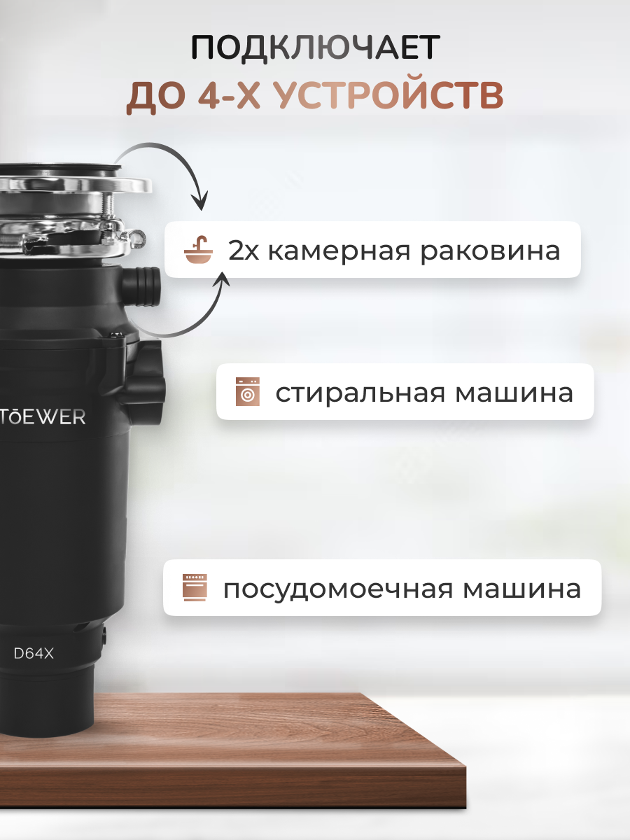 Измельчитель пищевых отходов STOEWER штоер D640 slim интересное: