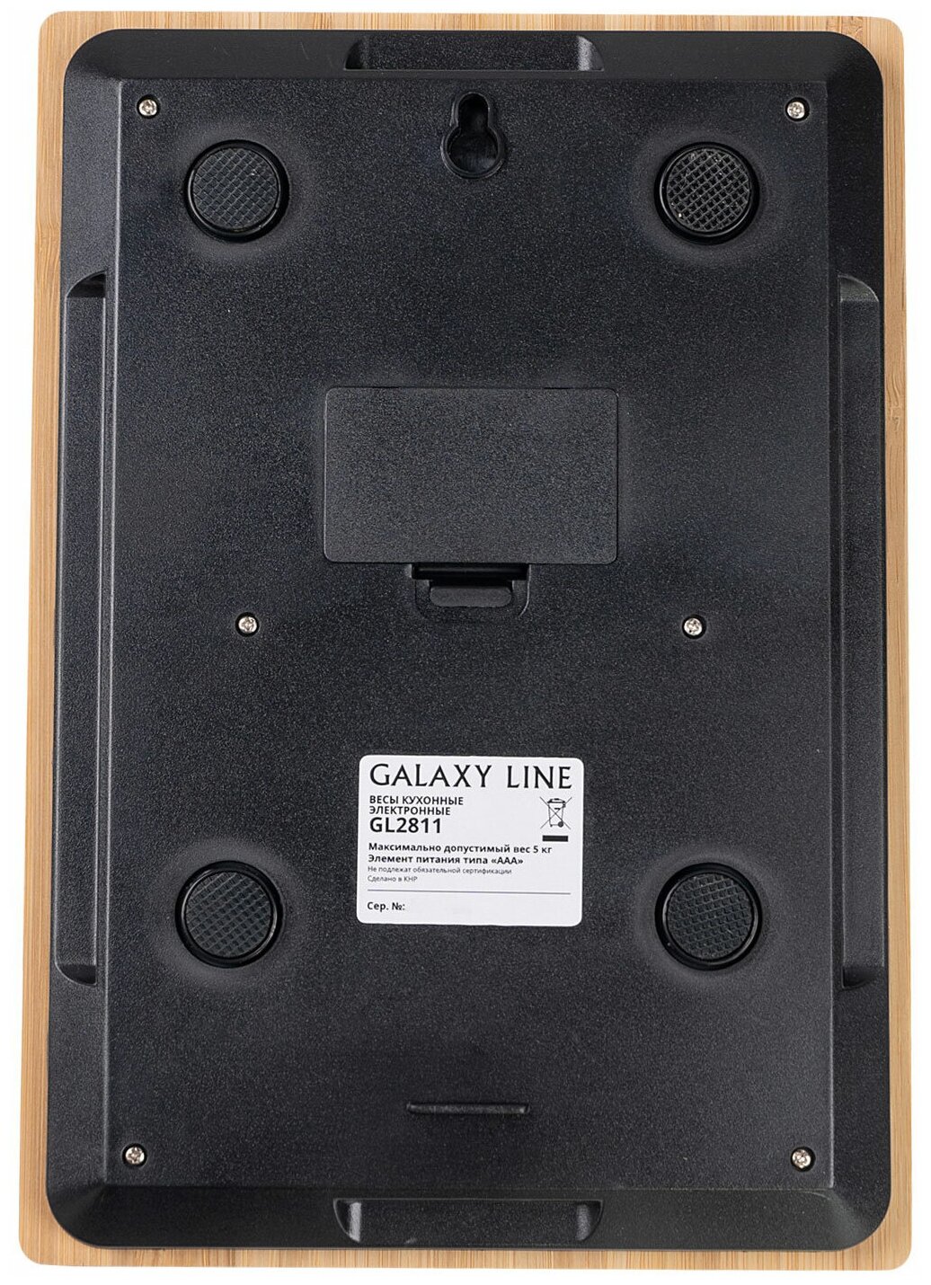 GALAXY LINE GL 2811 Весы кухонные электронные, элемент питания типа «ААА»,2шт. (в комплекте), бамбуковая платформа, сверхточная сенсорная электронная система Жидкокристаллический дисплей, подсветка дисплея, максимально допустимый вес 5 кг, цена деления 1