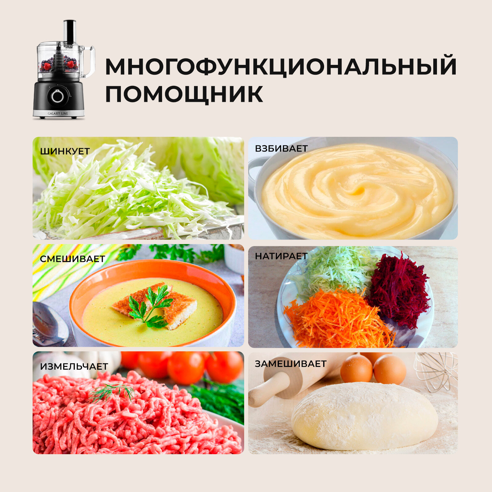 Кухонный комбайн Galaxy Line GL2307 с мясорубкой, теркой, насадками для перемешивания интересное: