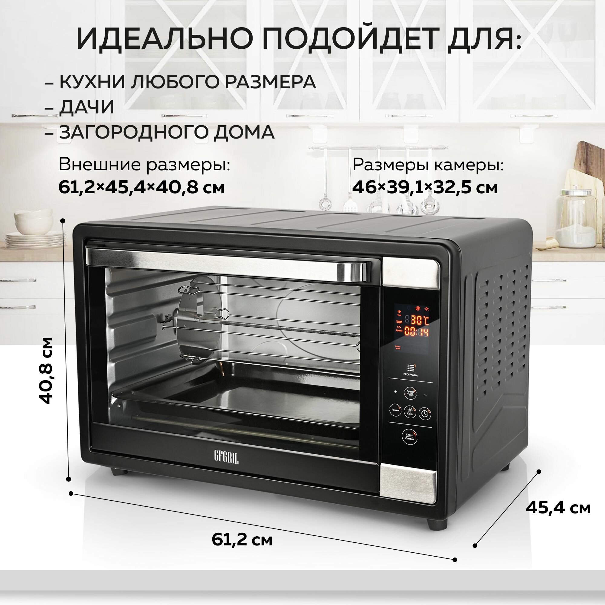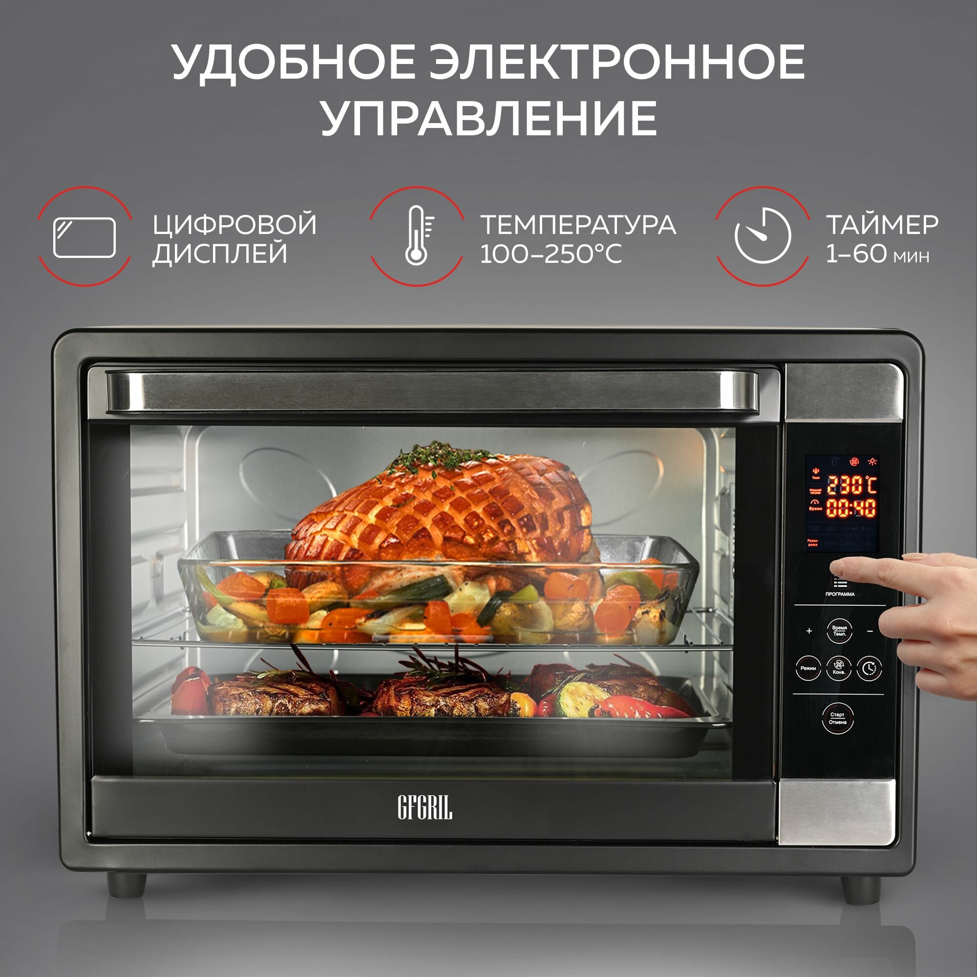Ниже Вы можете прочитать отзывы на GFGRIL Многофункциональная мини-печь GFOO-7, 63 л, 2200Вт, духовка с эл.управлением, конвекция, вертел, шашлычница, ознакомится с подробными характеристиками, посмотреть интересные обзоры и фотографии на GFGRIL Многофункциональная мини-печь GFOO-7, 63 л, 2200Вт, духовка с эл.управлением, конвекция, вертел, шашлычница.
