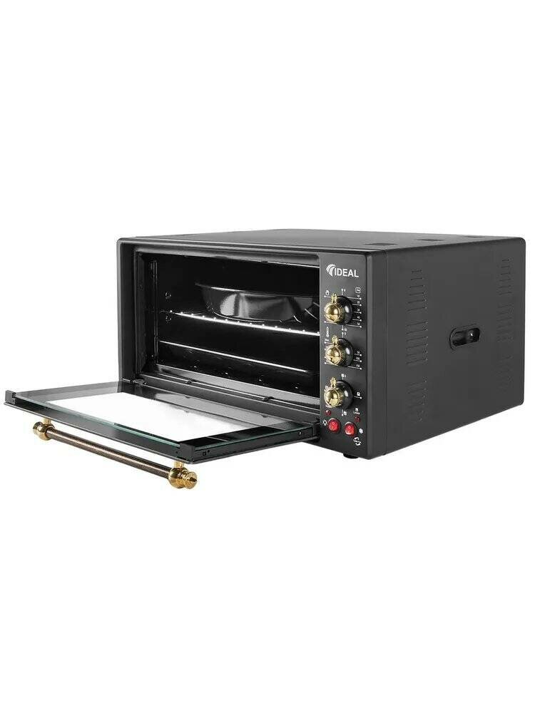 Многофункциональная мини печь IDEAL М 50 03 антрацит Ретро, электрическая духовка с конвекцией 50 литров, подсветка, таймер с отключением 90 мин
