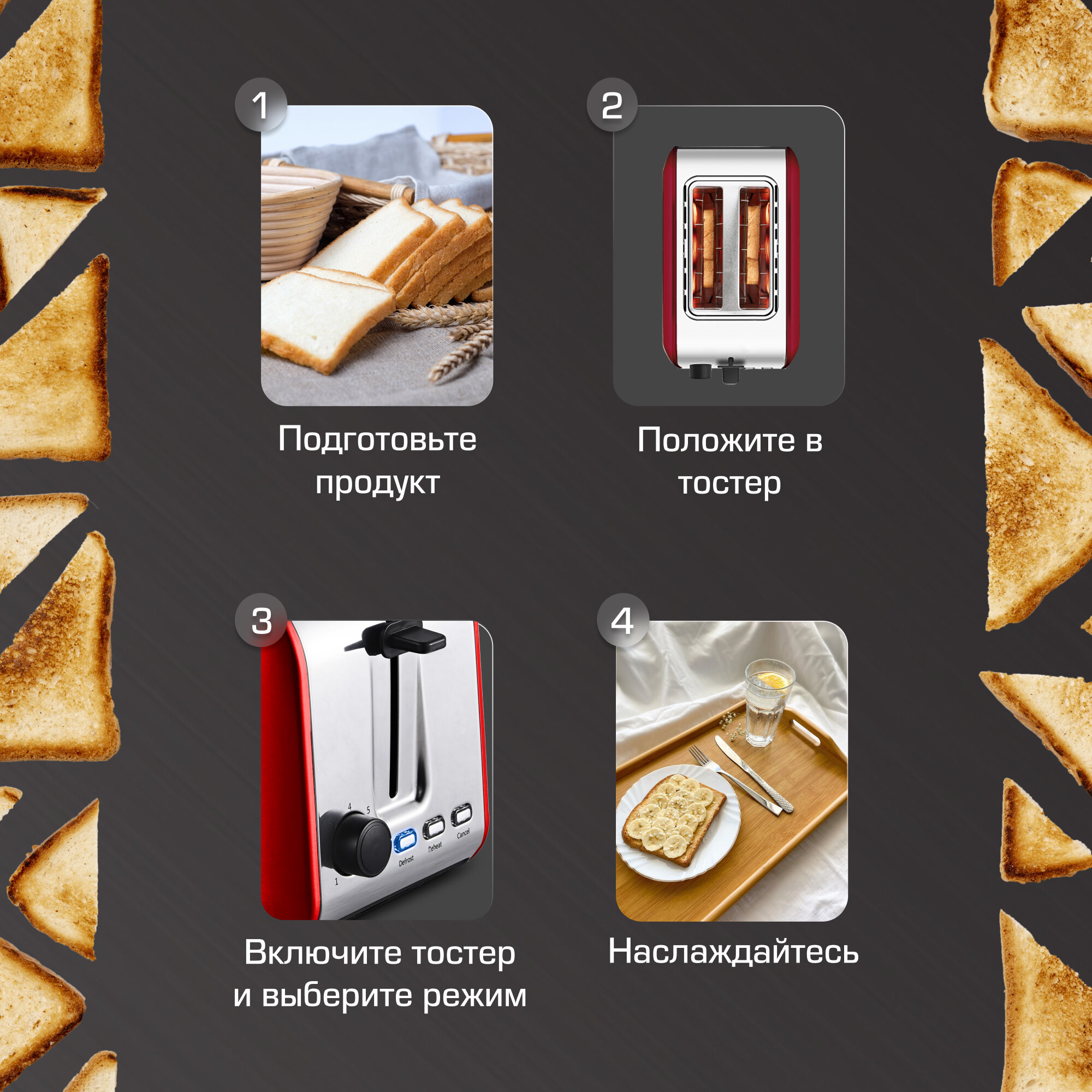 Тостер Zigmund & Shtain ST-90, 7 степеней обжарки, 950 Вт, красный/стальной