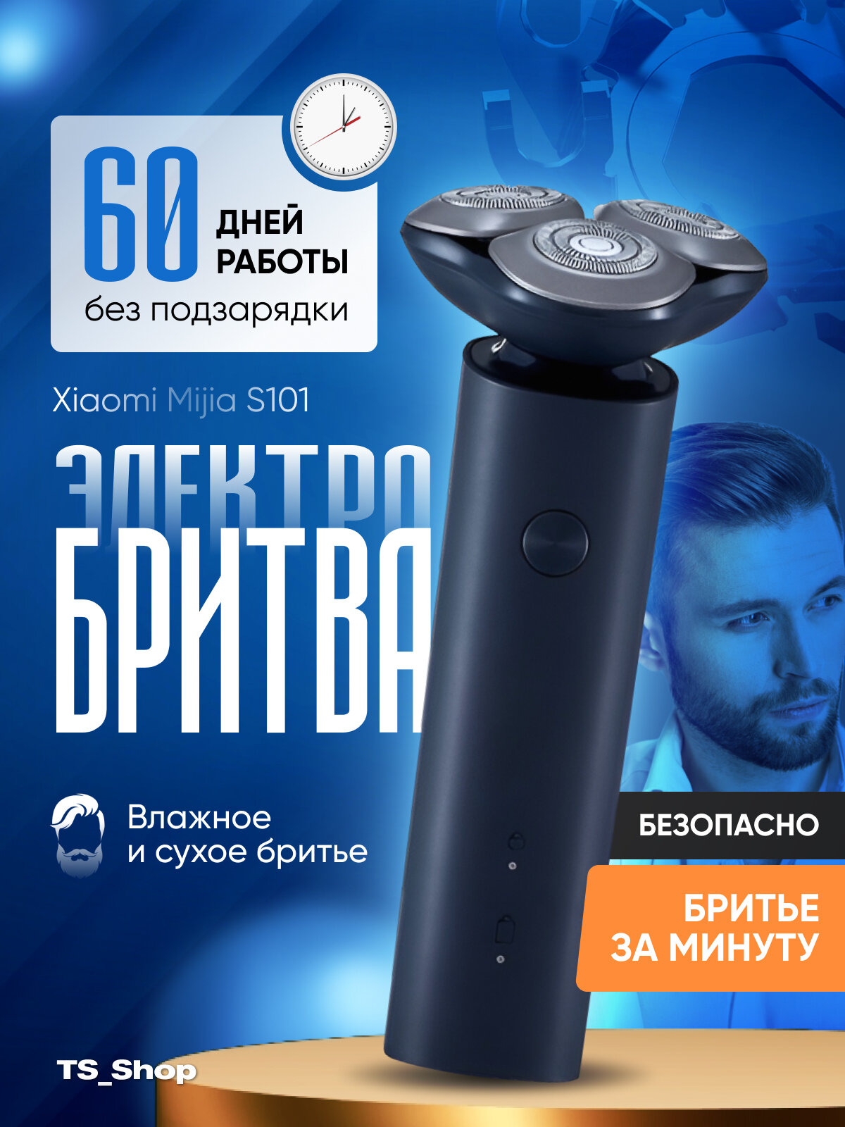 СохранитьЭлектробритва Xiaomi MiJia S101, CN, цвет синий/черный интересное: