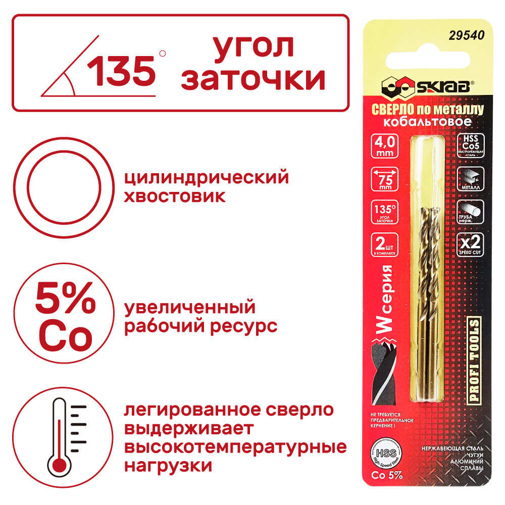 Сверло по металлу 4 мм 2шт. W-серия HSS кобальт Skrab 29540 интересное: