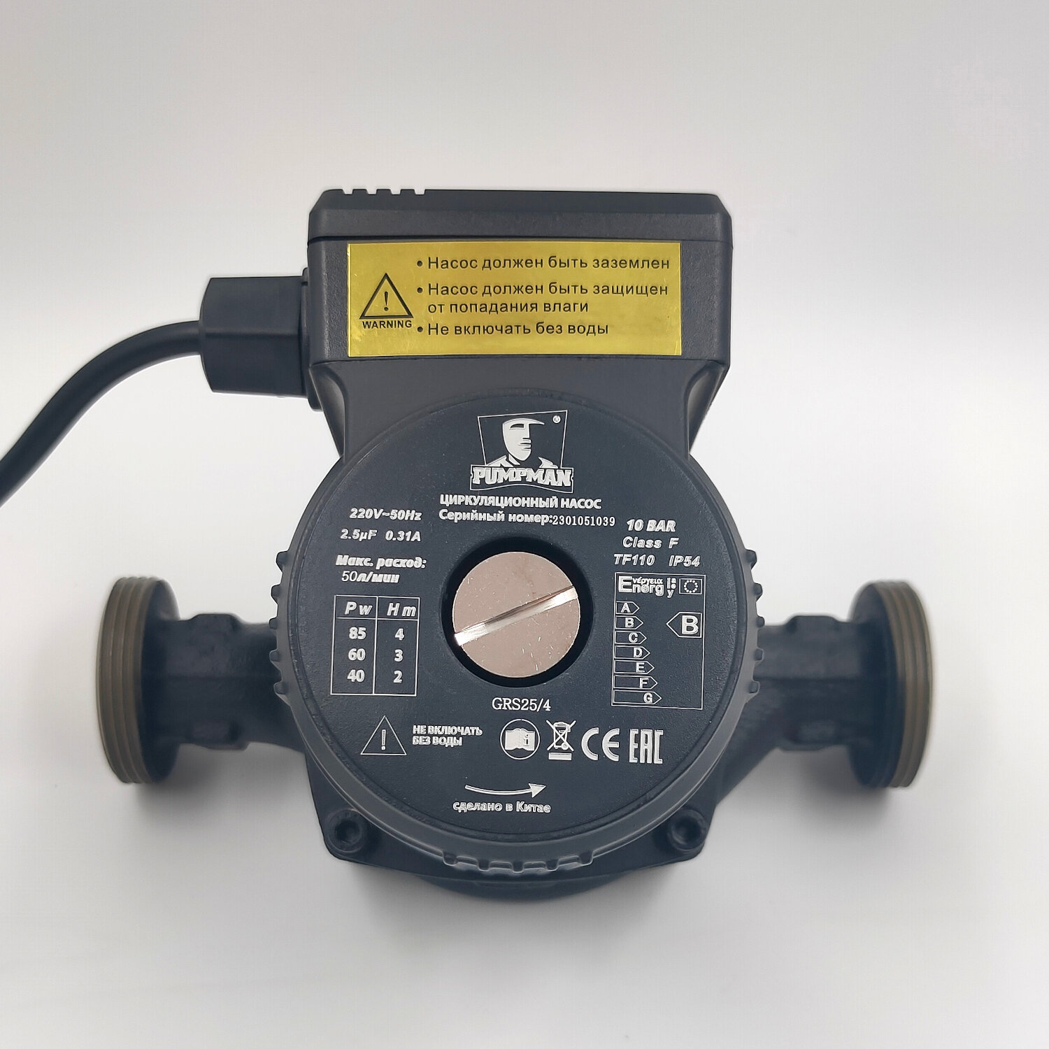 Насос циркуляционный GRS25/4, 180мм, напор 4м, 85Вт, с гайками и кабелем | код.3 | Pumpman (2шт.в упак.)