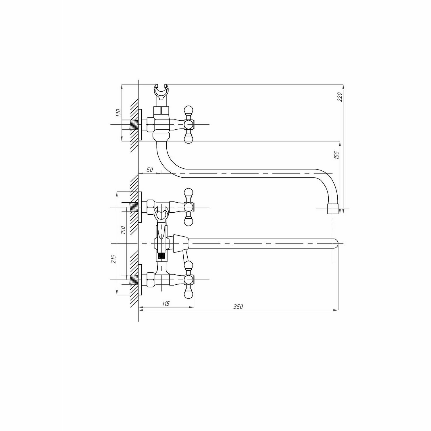 Купить Смеситель для ванны и раковины 1/2 кер ПСМ-150-К89 стандарт Б тип см-вудрншлр, эксц "РУС", хром