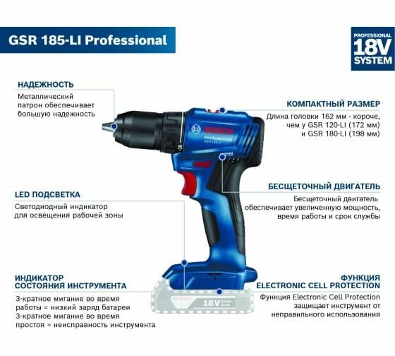 Дрель-шуруповерт аккумуляторная Bosch GSR 185-LI 06019K3003 интересное: