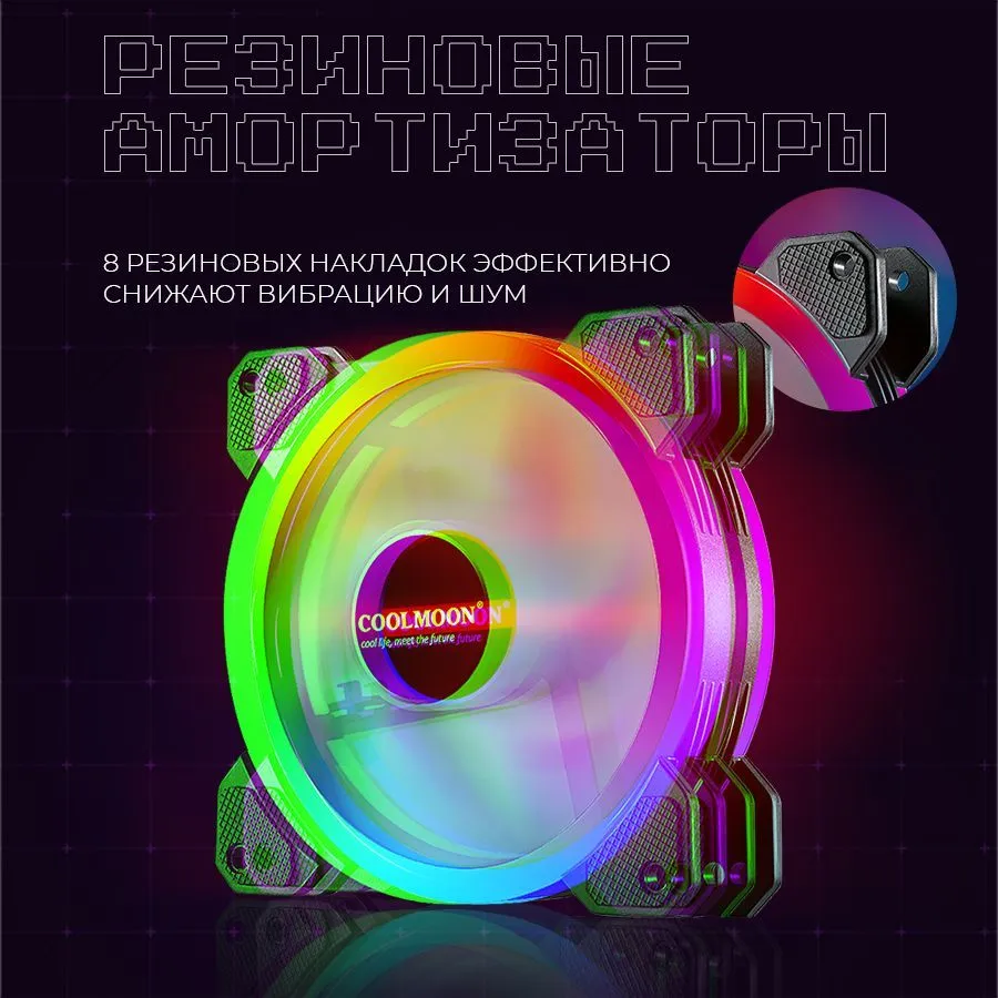 Вентилятор система охлаждения (кулер) COOLMOON с ARGB подсветкой для корпуса ПК 120x120x25мм комплект 2шт, контроллера, пульт управления, провод 50см